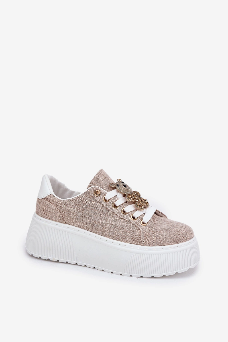 Sneakersy Na Platformie Z Przypinką Miś S.Barski BF51-014 Beżowe