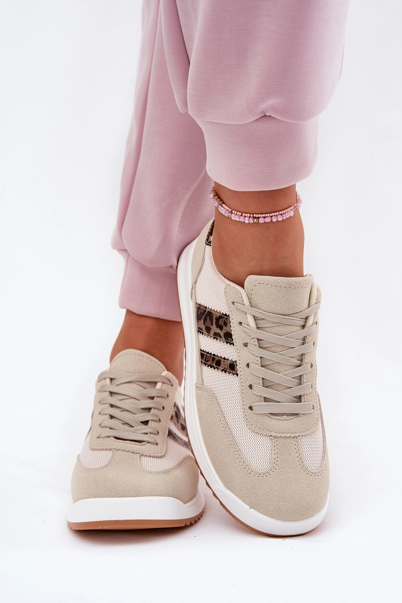 Sneakersy Damskie Z Eko Zamszu Panterka Beżowe Marinils
