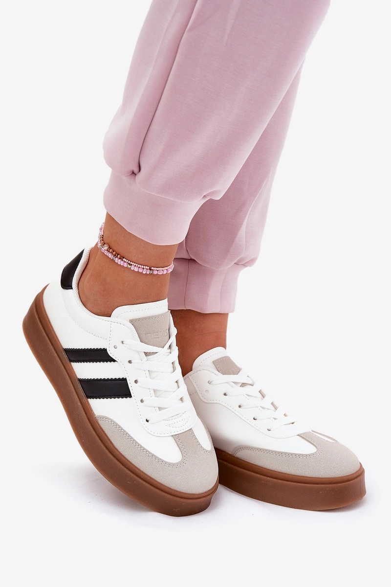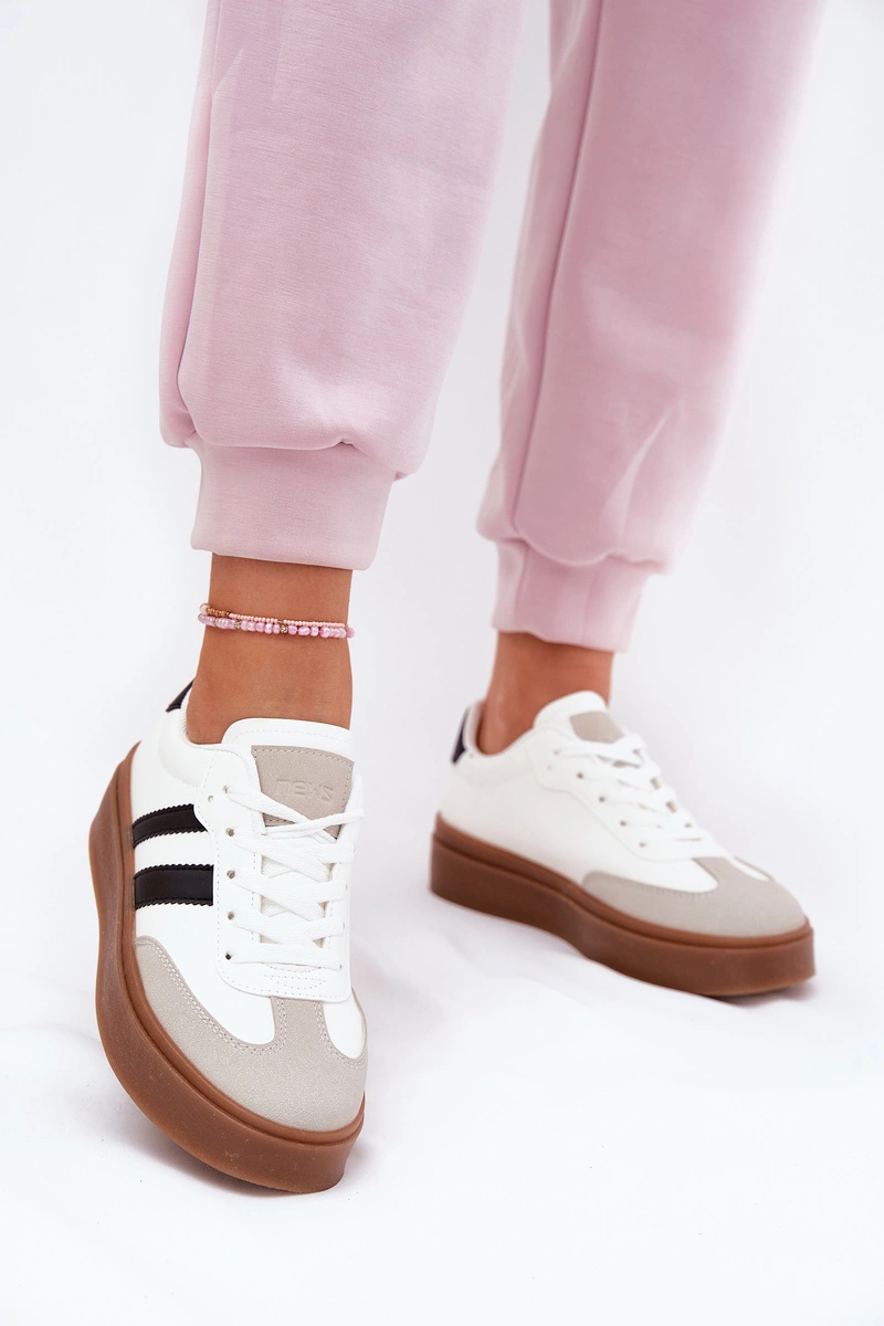 Sneakersy Damskie Na Platformie Z Eko Skóry Białe Elaraven