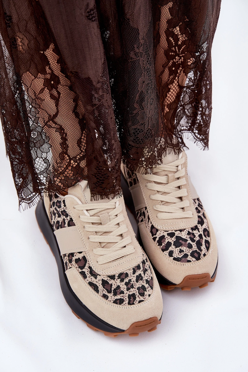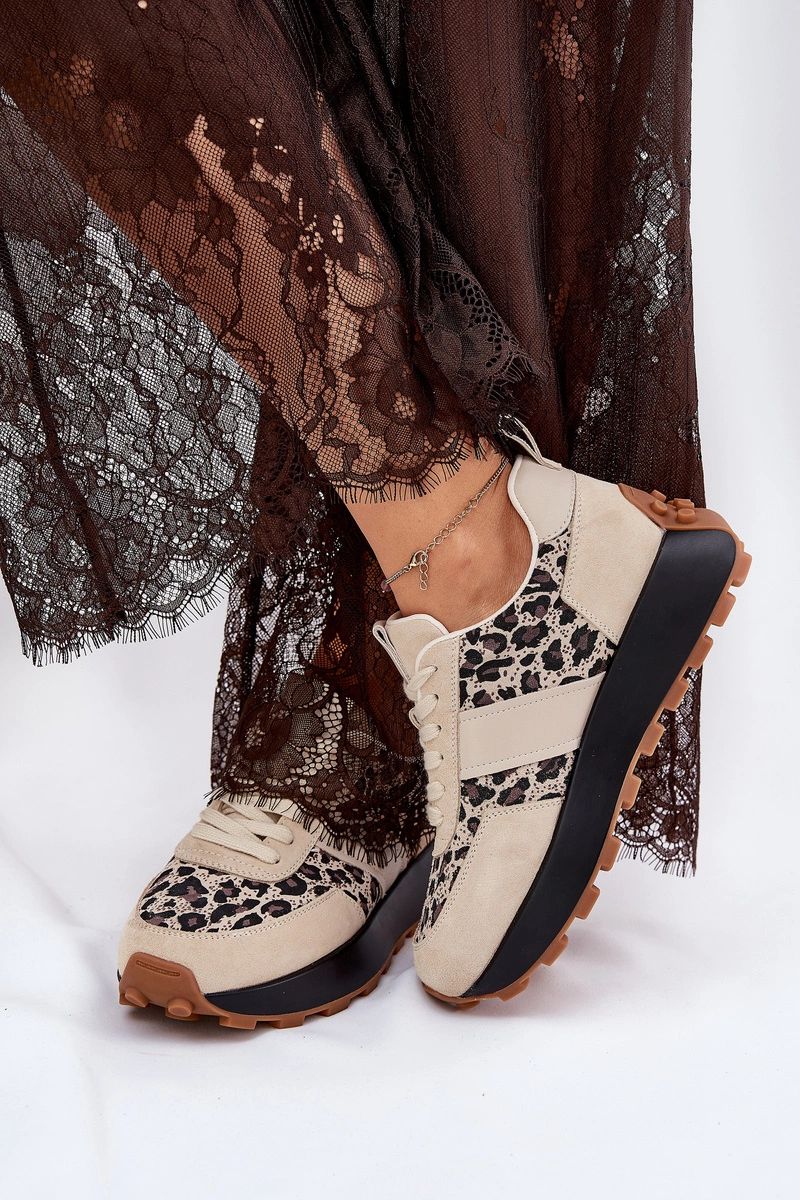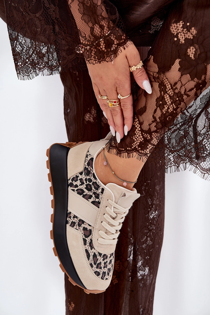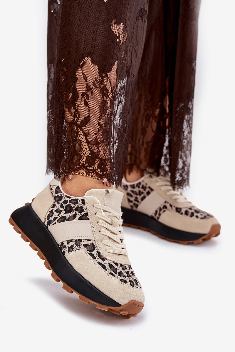 Zamszowe Sneakersy Damskie Na Platformie Panterka Vinceza 66793 Beżowe