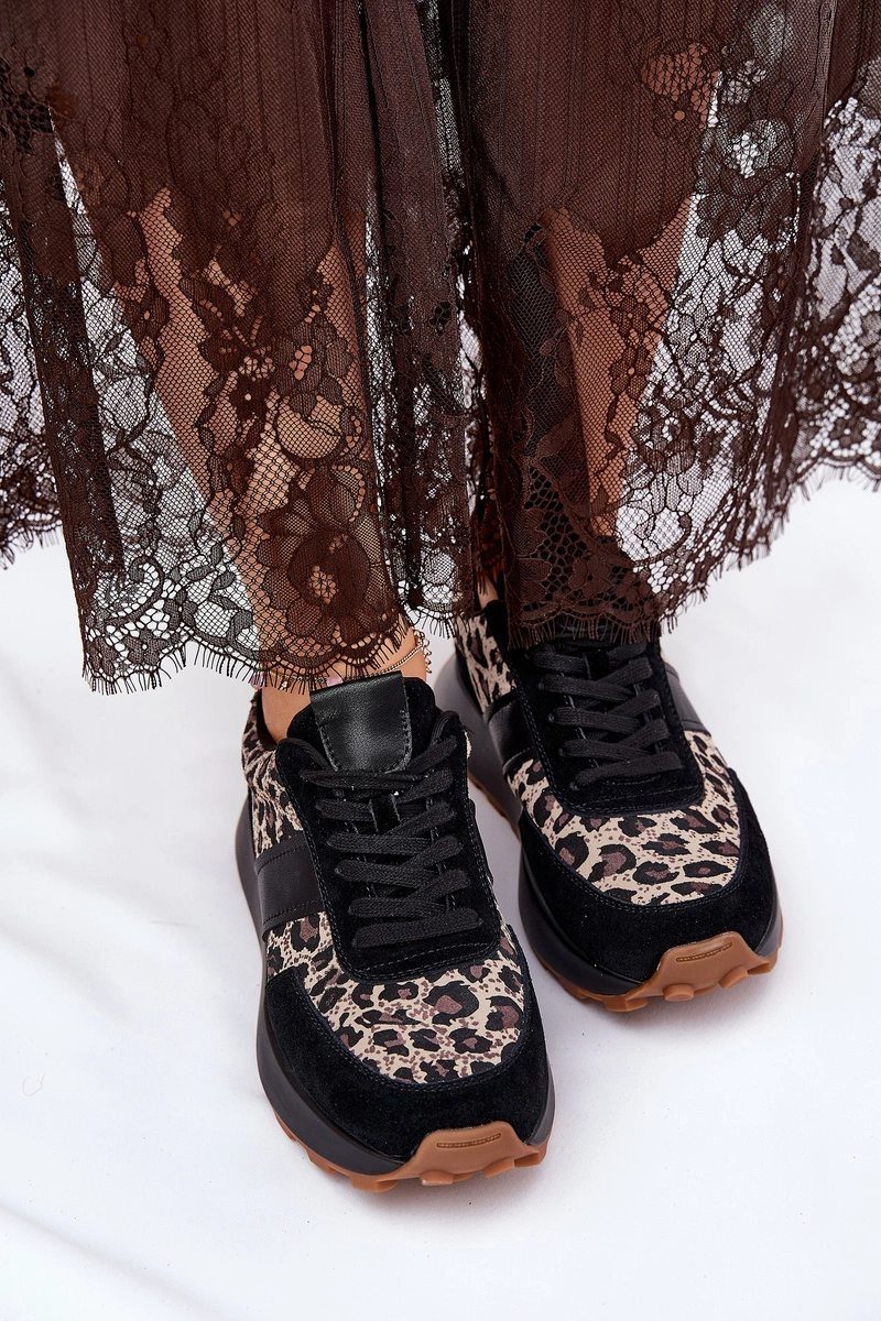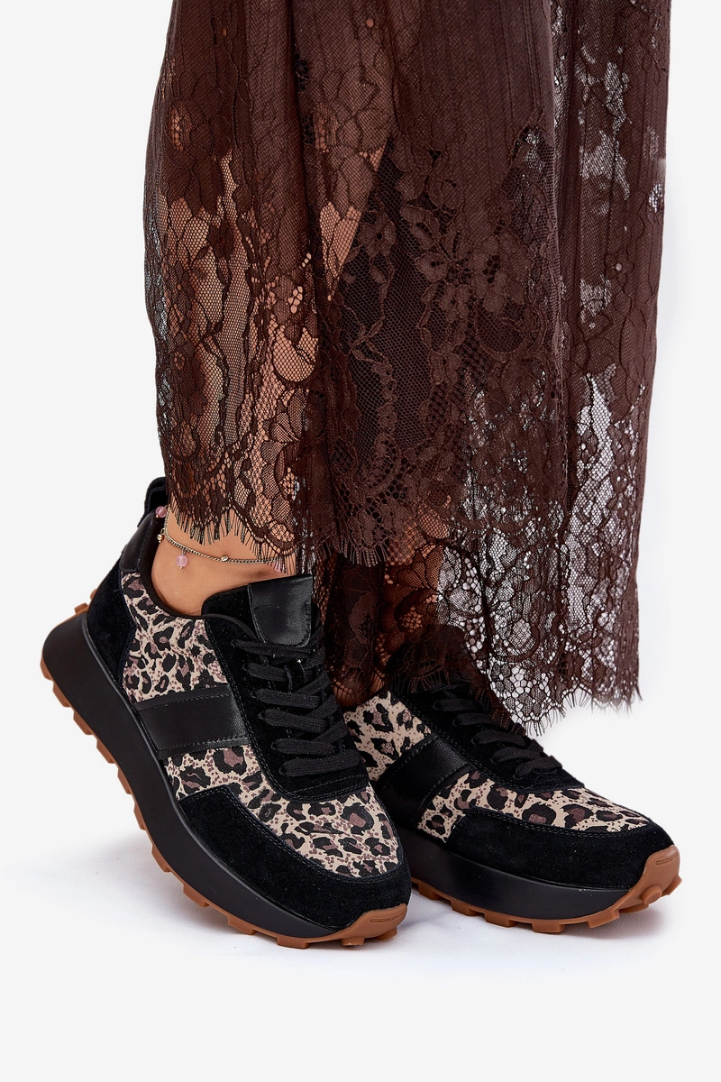 Zamszowe Sneakersy Damskie Na Platformie Panterka Vinceza 66793 Czarne
