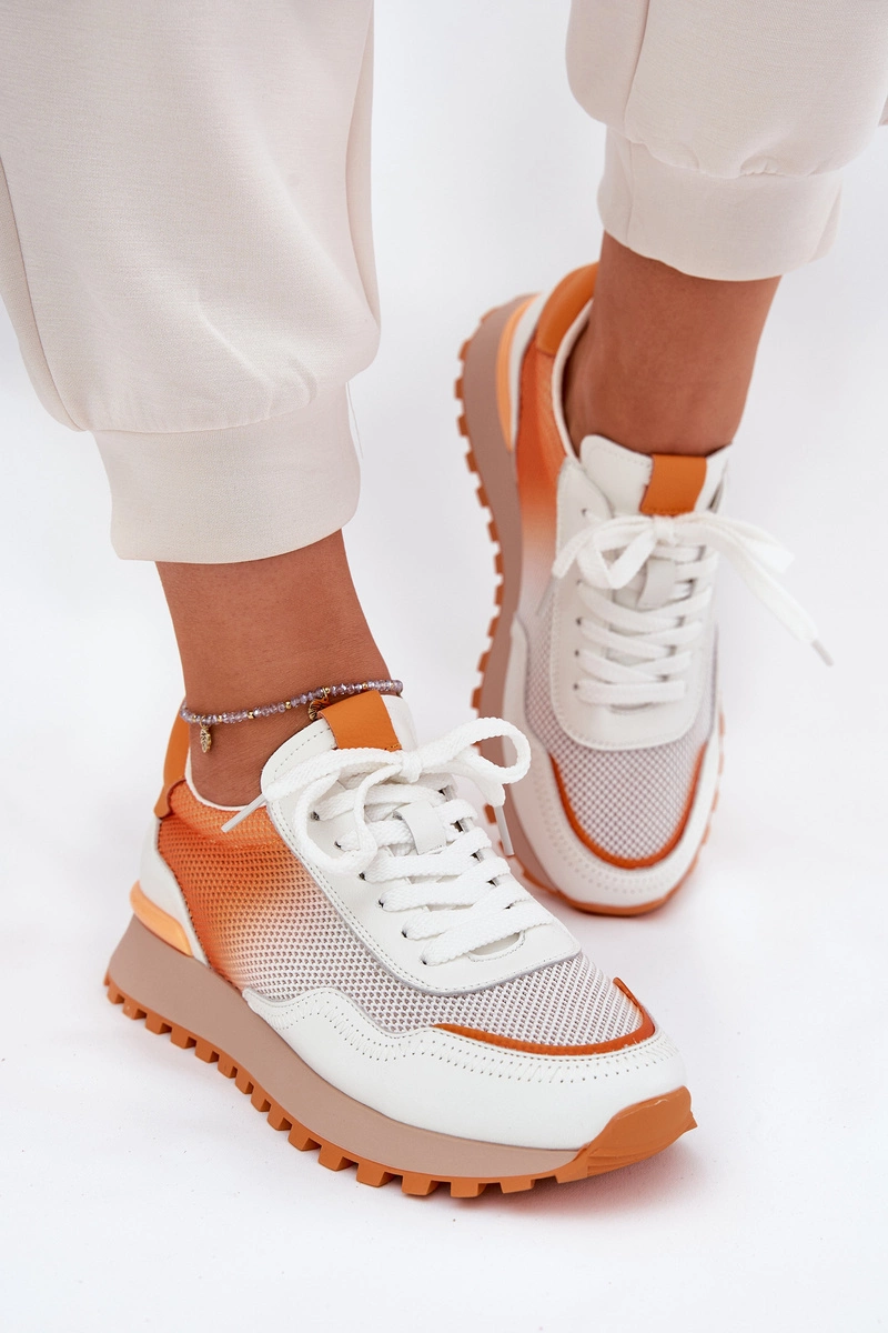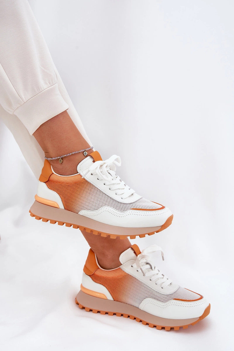 Skórzane Buty Sportowe Z Siateczką Damskie Vinceza 66775 Pomarańczowe