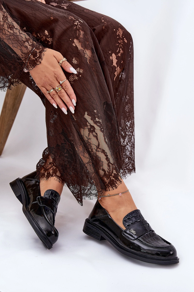 Lakierowane Skórzane Mokasyny Damskie Vinceza 91125 Czarne