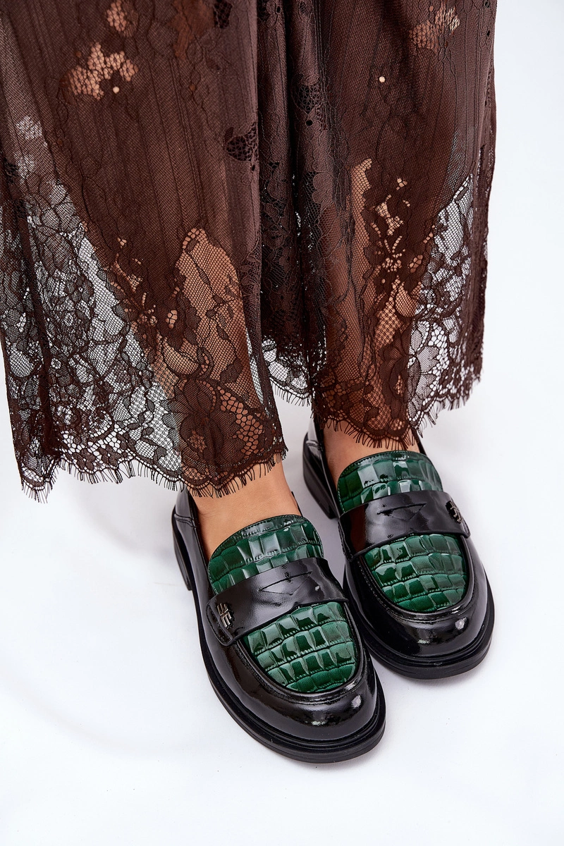 Lakierowane Skórzane Mokasyny Damskie Vinceza 91125 Zielono-Czarne