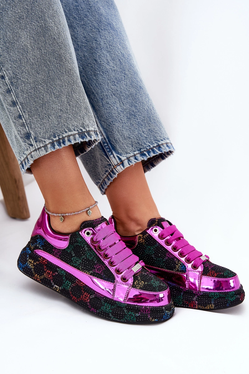Damskie Zdobione Sneakersy Na Platformie GOE NN2N4006 Czarne