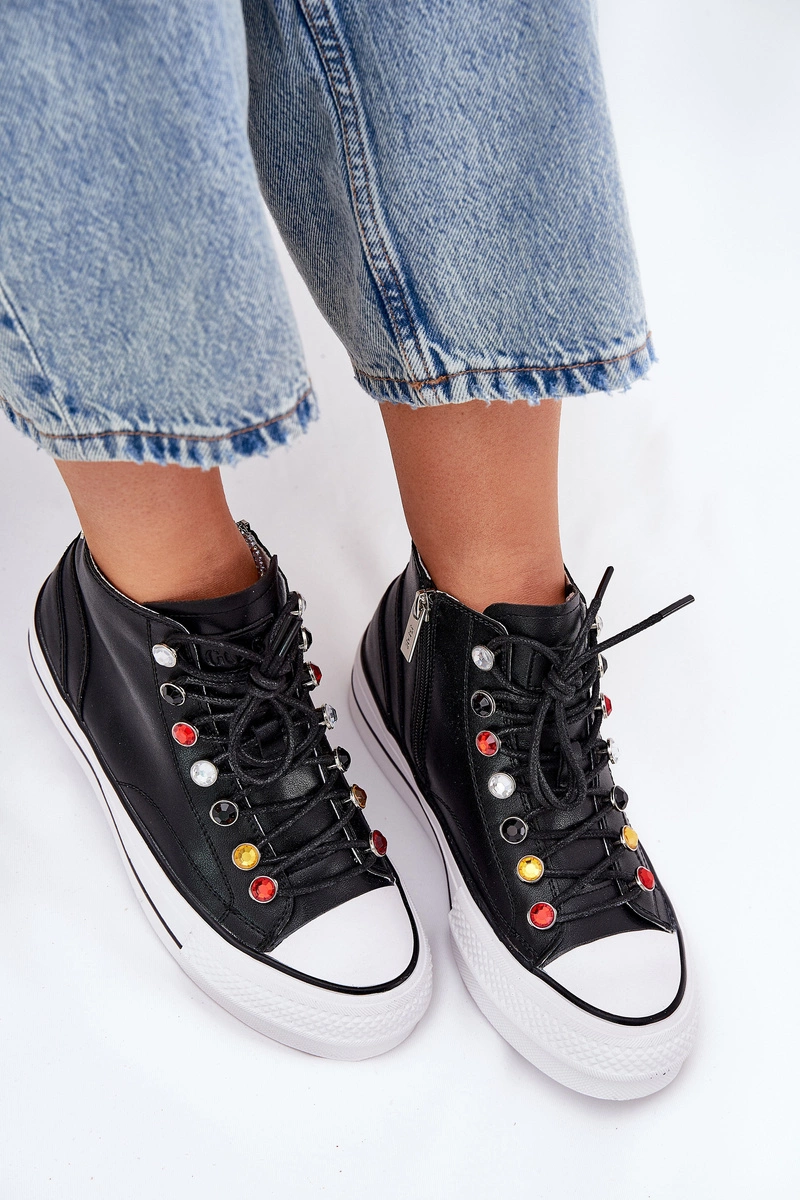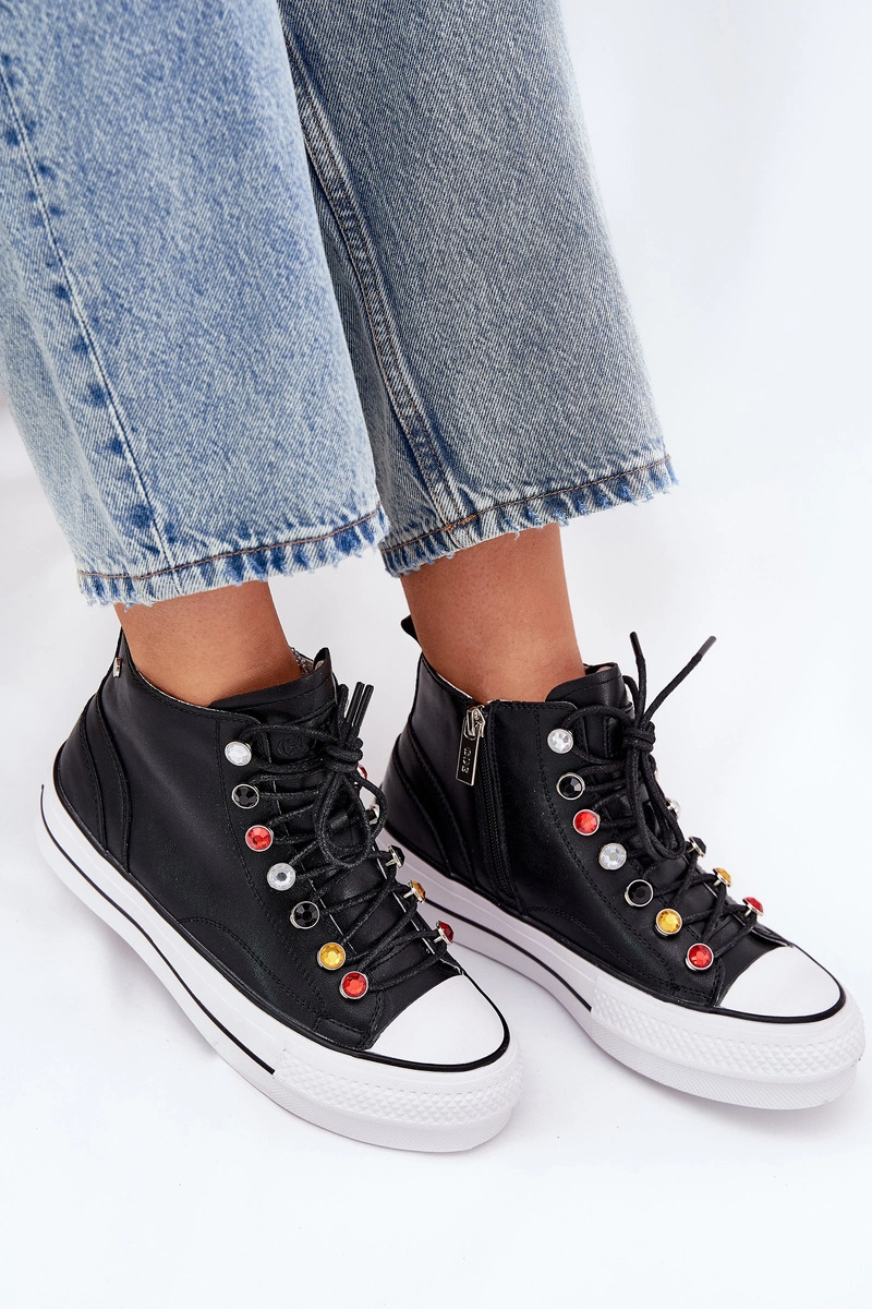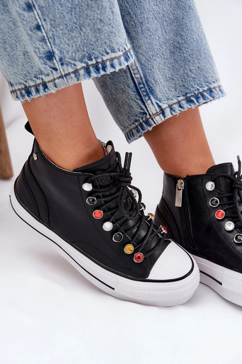 Skórzane Wysokie Trampki Damskie GOE RR2N4101 Czarne