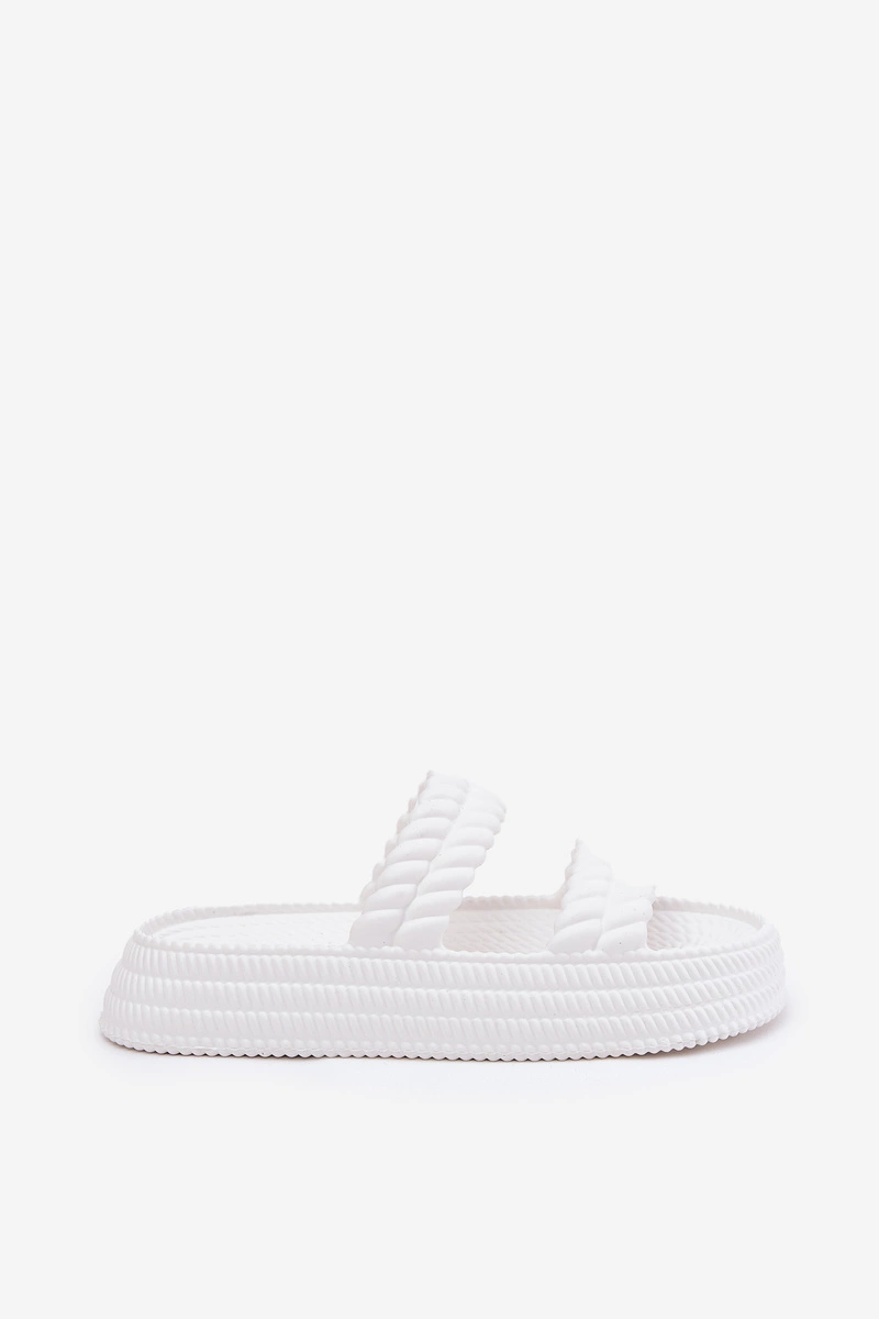Piankowe Lekkie Klapki Damskie Na Platformie S.Barski ZK51-001 Białe