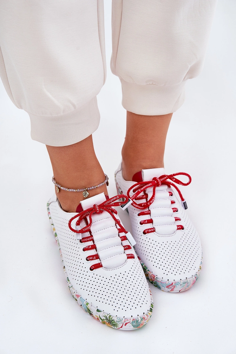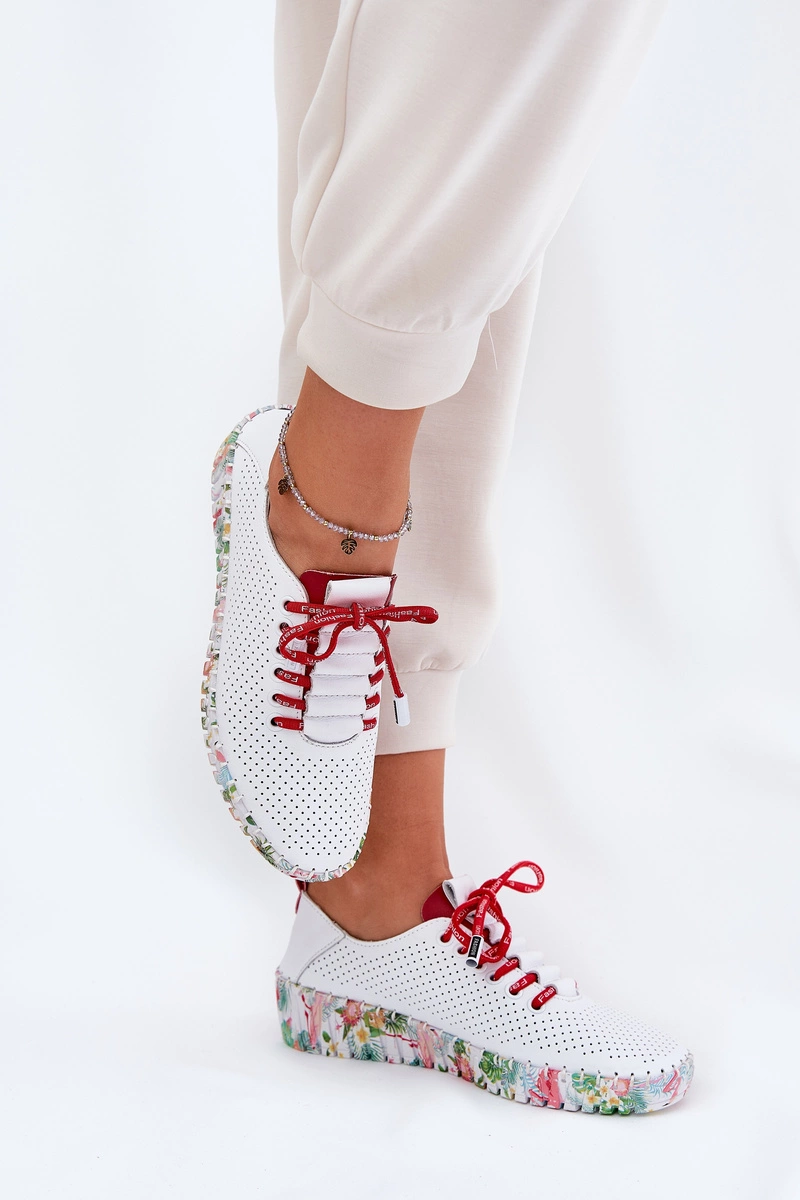 Skórzane Półbuty Na Wzorzystej Platformie Artiker 54C1567 Biało-Czerwone