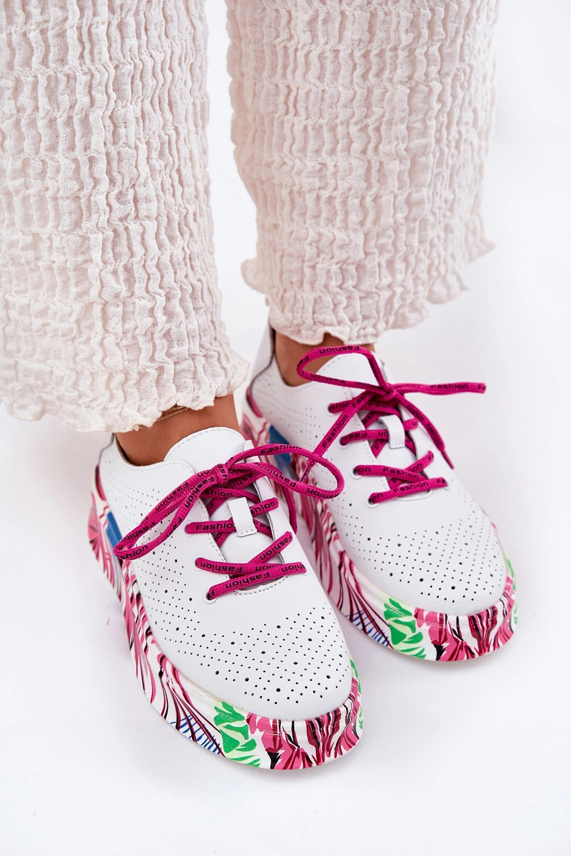 Skórzane Sneakersy Damskie Na Wzorzystej Platformie Vinceza 88017 Białe
