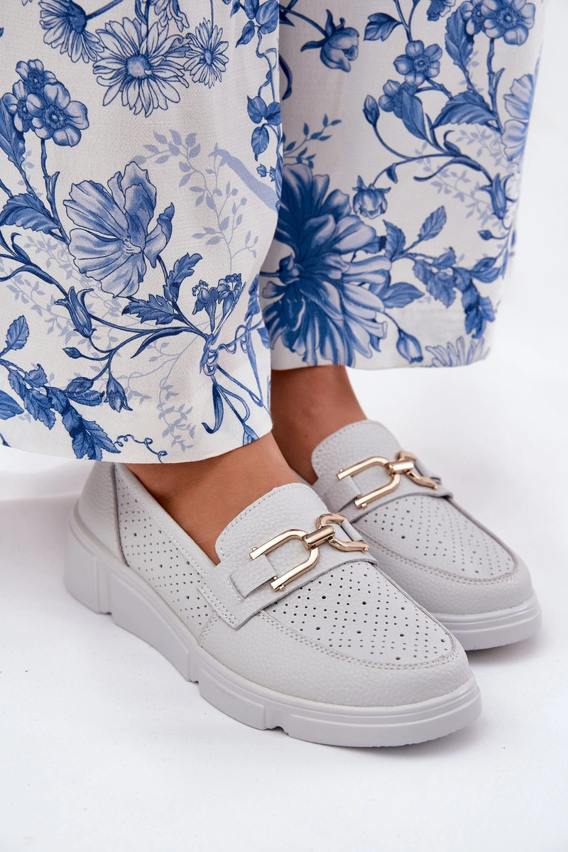 Mokasyny Damskie Skórzane Ze Złotym Detalem Vinceza 88007 Jasnoszare