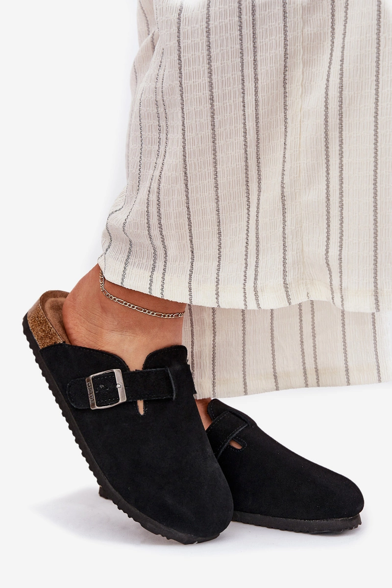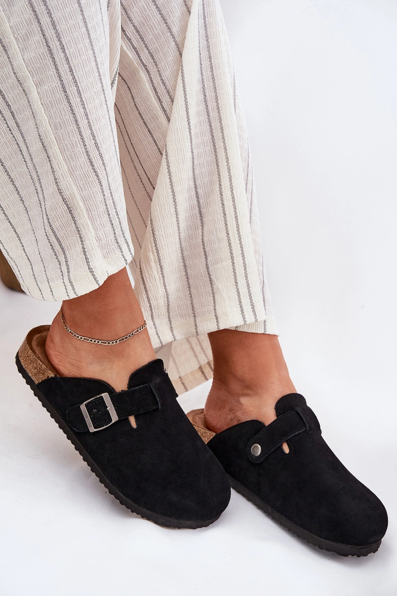 Zamszowe Klapki Chodaki Damskie Z Klamrą Big Star RR274A384 Czarne