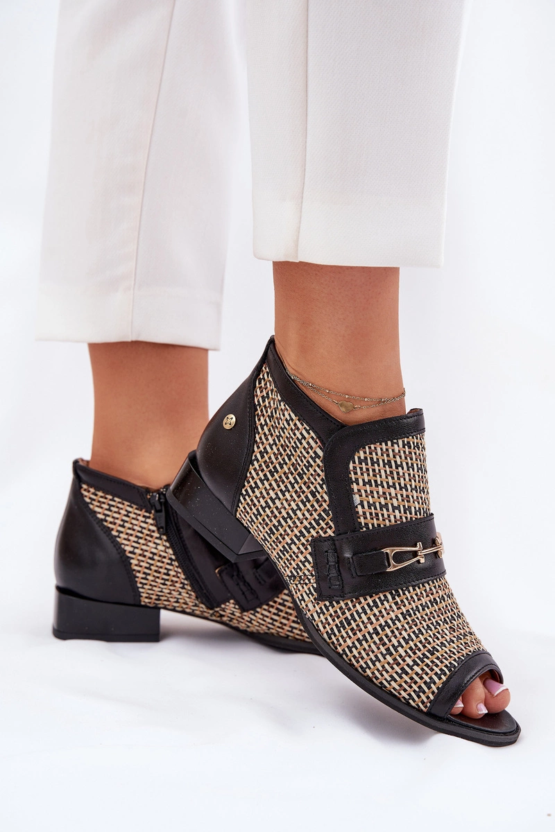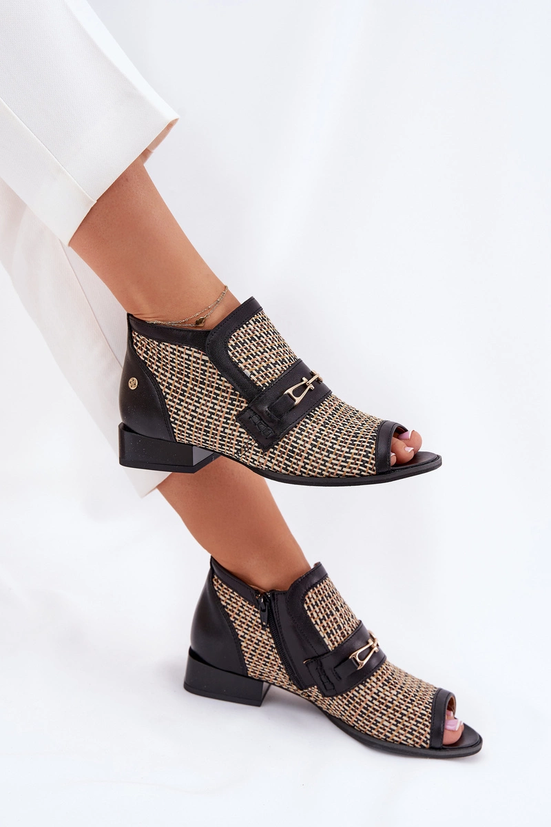 Skórzane Botki Damskie Z Odkrytymi Palcami Maciejka 06934-39/00-1 Czarno-Beżowe