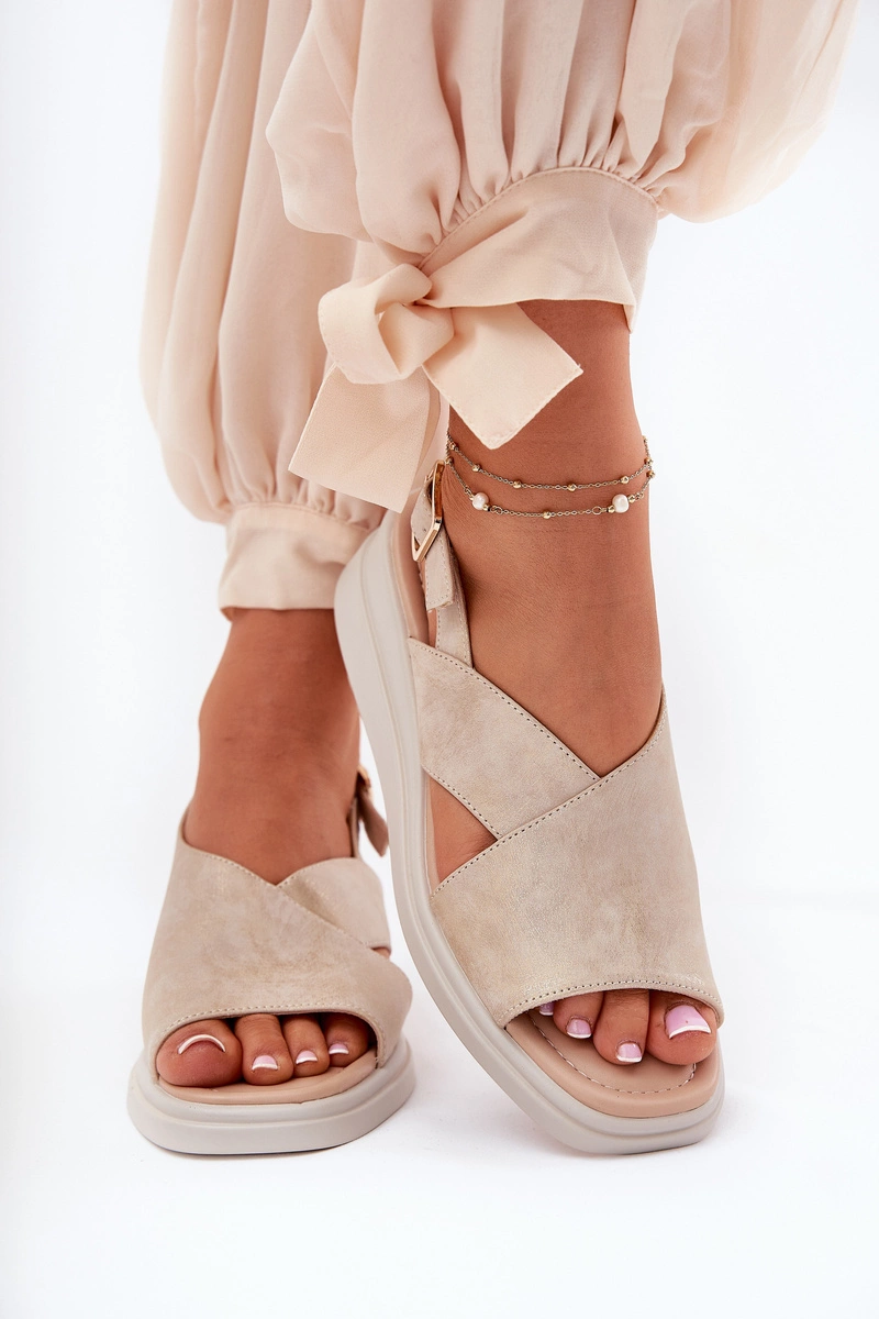 Sandały Damskie Na Koturnie Z Eko Skóry Złote Quilara