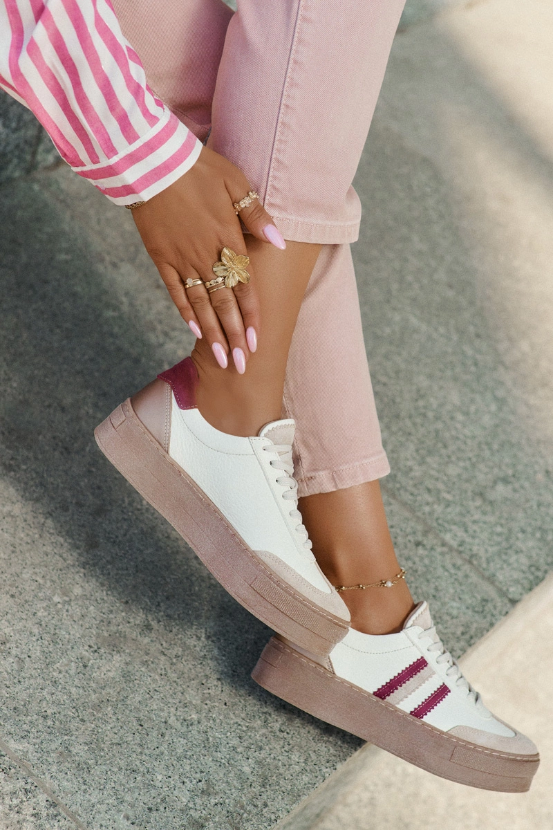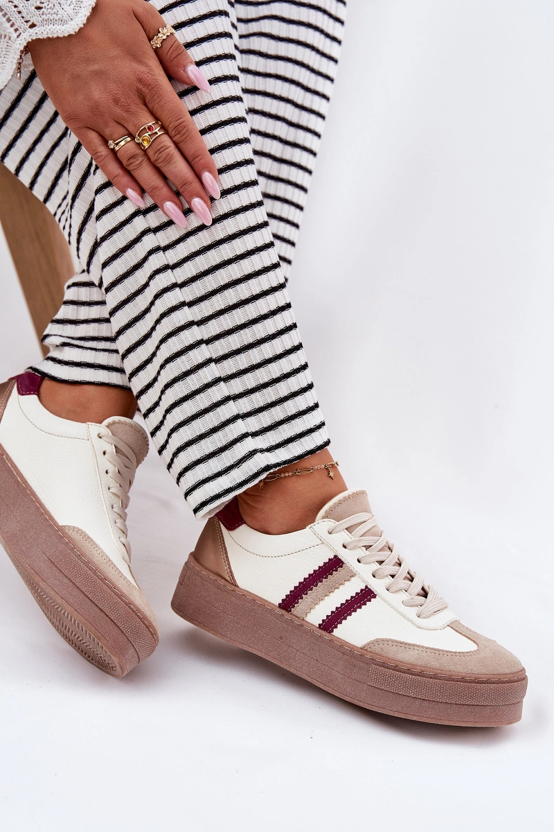 Skórzane Sneakersy Damskie Na Platformie Zazoo N1234 Beżowo-Bordowe