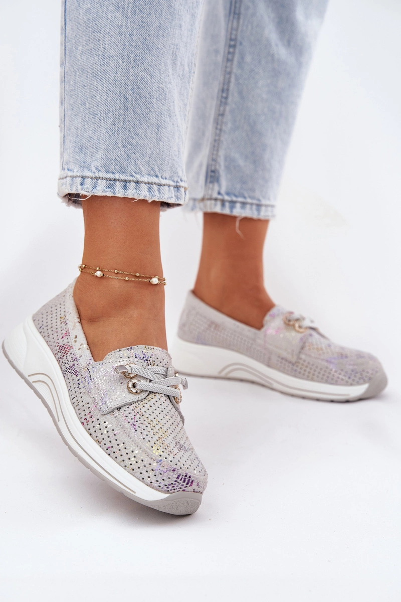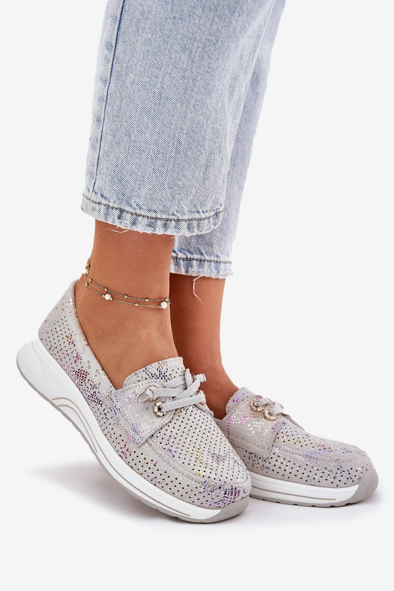 Zamszowe Półbuty Ze Skóry Naturalnej Na Platformie Artiker 56C2104 Szare