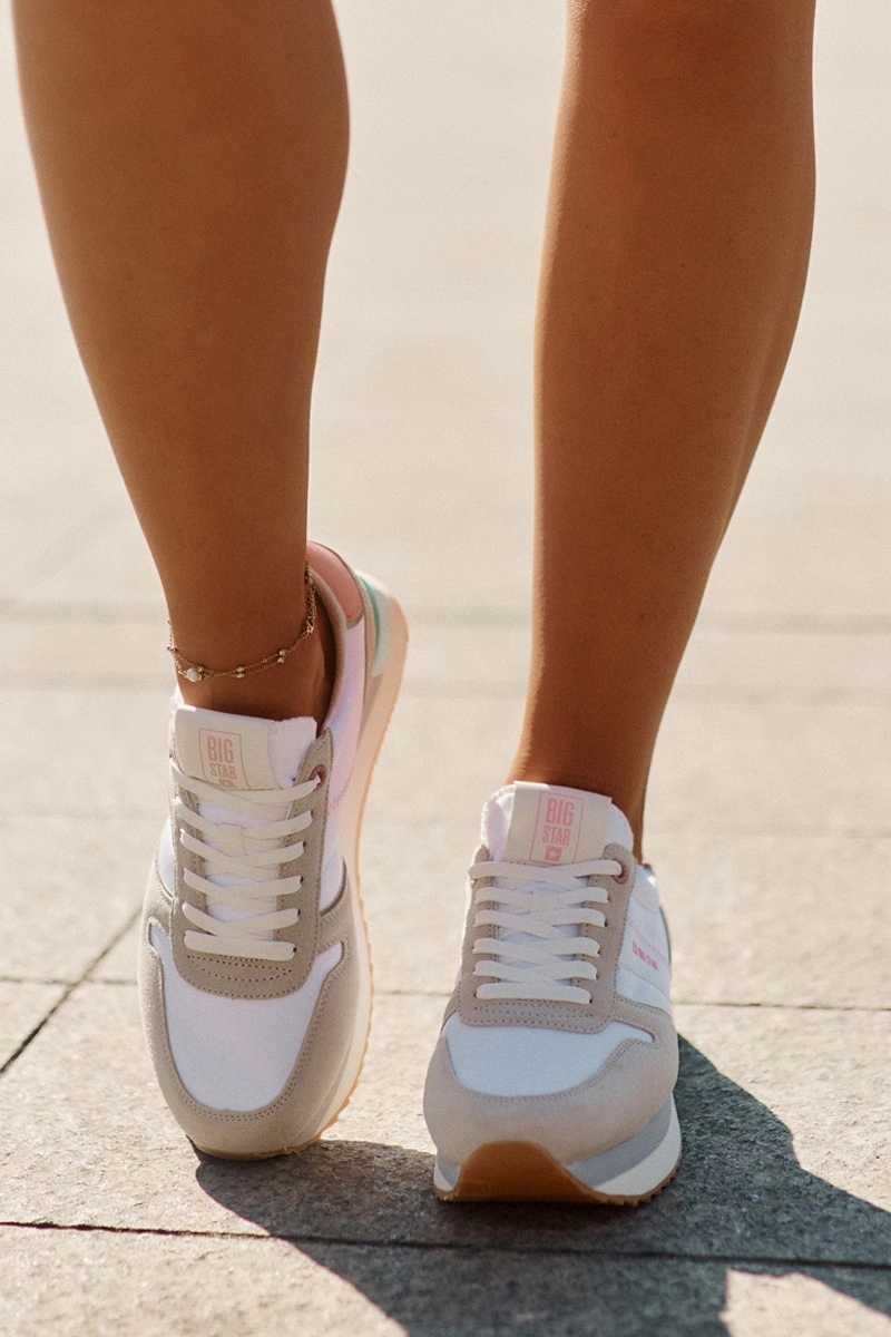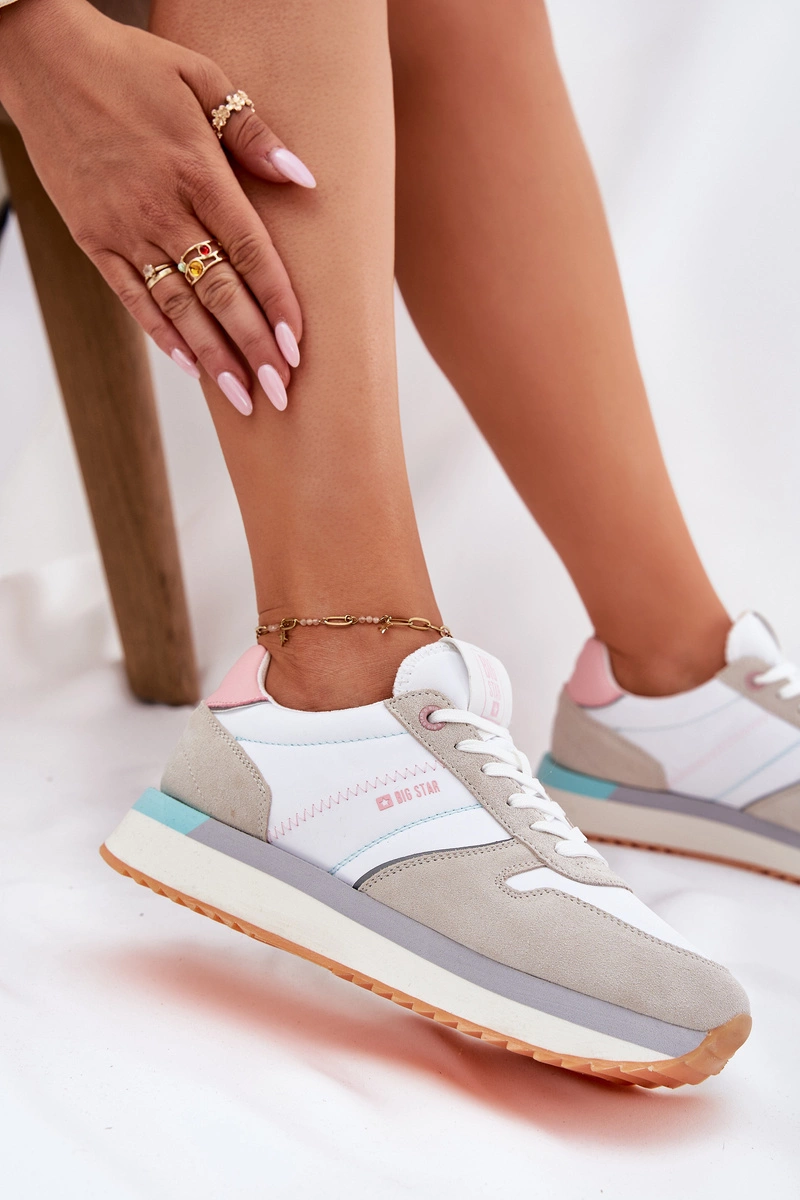 Zamszowe Sneakersy Damskie Big Star RR274A047 HI-POLY SYSTEM Beżowo-Białe