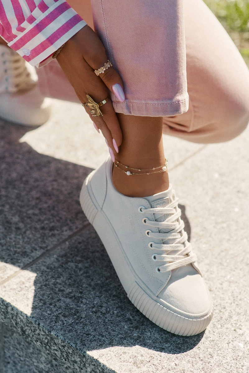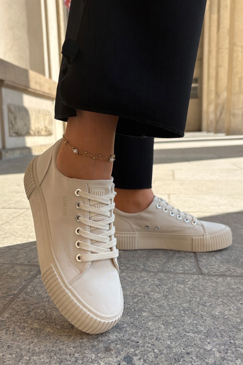 Trampki damskie od marki Big Star, wykonane z materiału tekstylnego. Idealne na co dzień, te trampki łączą wygodę z prostym, ponadczasowym stylem. Osadzone na platformie, która delikatnie unosi sylwetkę oraz zapewnia dodatkową wysokość i komfort. Doskonale pasują do wielu casualowych stylizacji, zapewniając komfort i lekkość na każdym kroku.