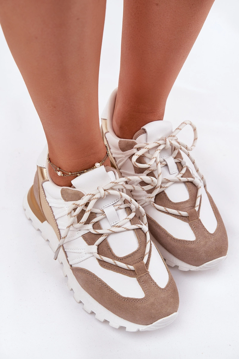 Skórzane Półbuty Sneakersy Damskie Artiker 56C1738 Beżowo-Złote