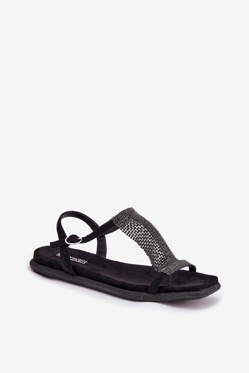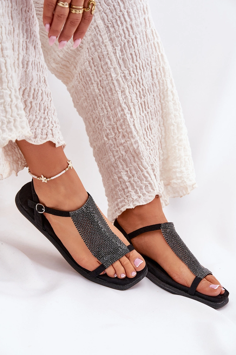 Płaskie Eleganckie Sandały Damskie Z Kryształkami Artiker 56C1370 Czarne
