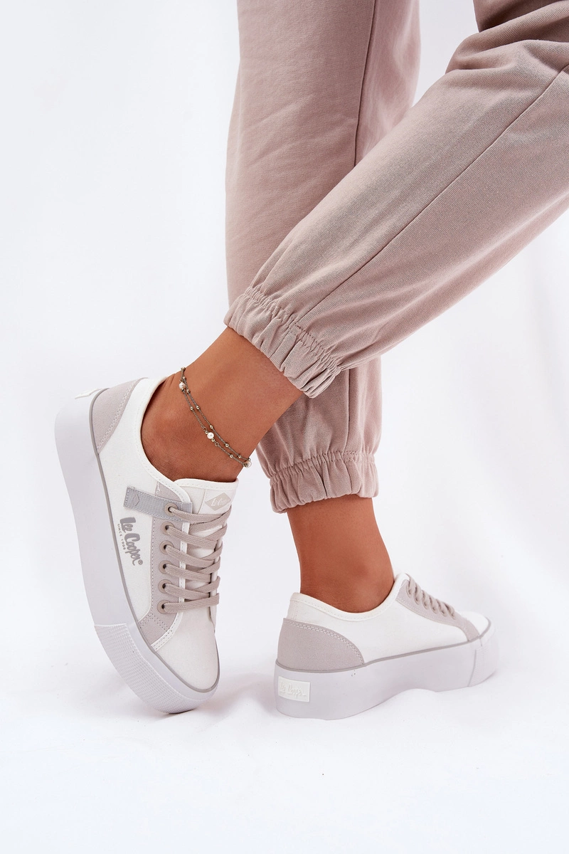 Trampki Damskie Na Platformie Lee Cooper LCW-25-31-3479L Biało-Szare