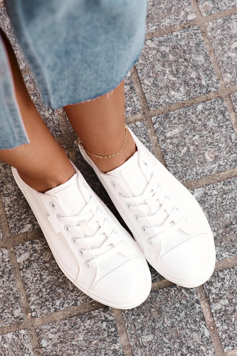 Trampki damskie od marki Big Star to połączenie ponadczasowego stylu z nowoczesnym wyglądem. Wykonane z materiałów najwyższej jakości, oferują nie tylko modny wygląd, ale także wygodę przez cały dzień. Gumowa podeszwa zapewnia doskonałą przyczepność, a klasyczne sznurowanie umożliwia idealne dopasowanie do stopy. Te trampki będą świetnym wyborem do codziennych stylizacji, łącząc funkcjonalność z casualowym stylem. Przy wyborze rozmiaru prosimy sugerować się poniższą tabelą rozmiarów.