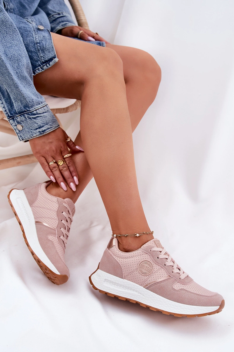 Sneakersy Damskie Na Platformie Big Star RR274489 Hi-Poly System Różowe