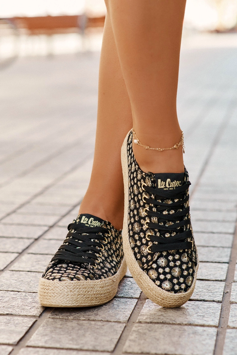 Wzorzyste Trampki Damskie Na Platformie Z Plecionką Lee Cooper LCW-25-08-3647L Czarne