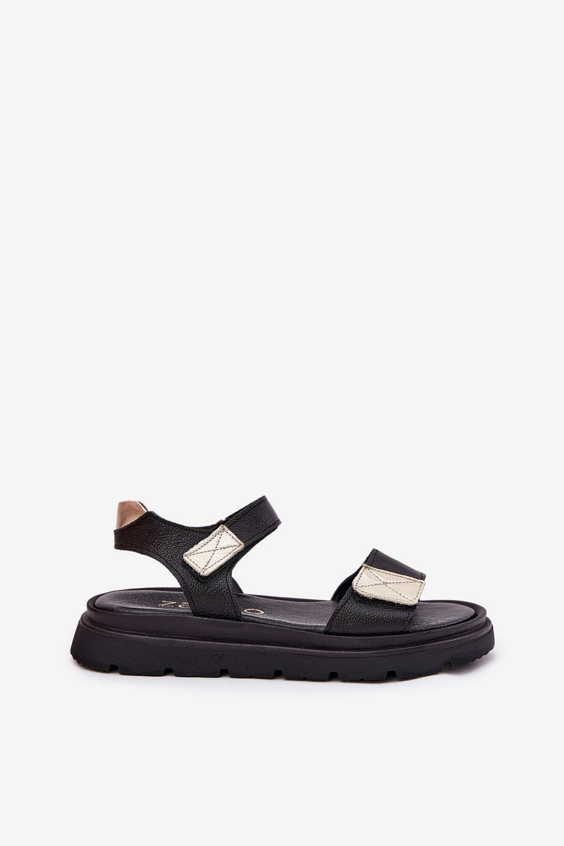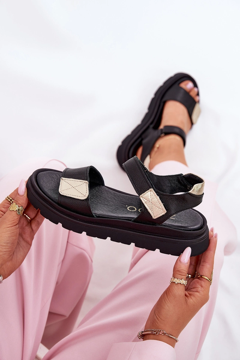 Skórzane Sandały Damskie Na Platformie Zazoo 40443 Czarne