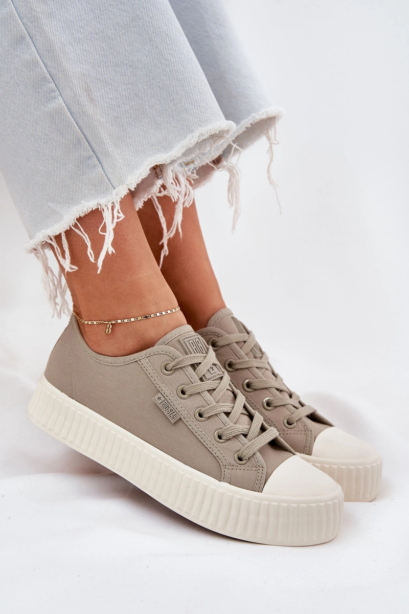 Materiałowe Trampki Damskie Na Platformie Big Star RR274779 Szare