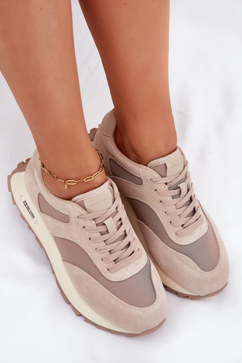 Zamszowe Sneakersy Na Platformie Damskie Big Star RR274897 HI-POLY SYSTEM Beżowe