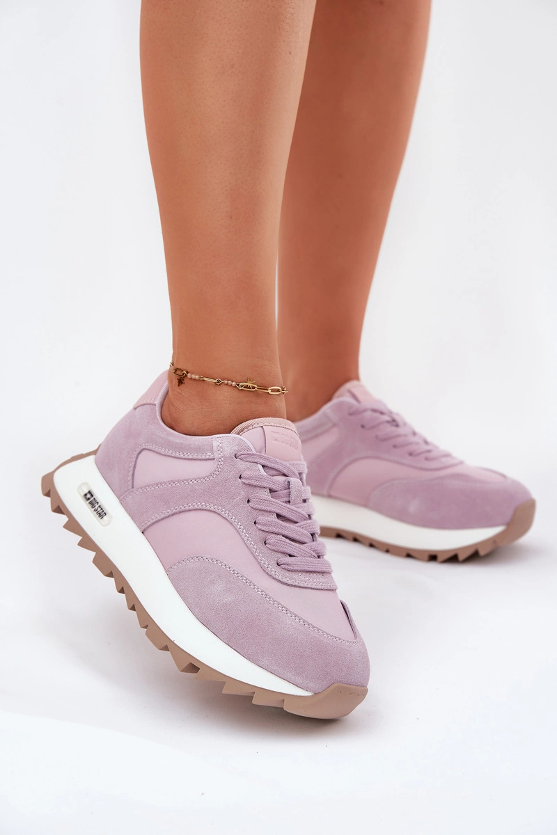 Zamszowe Sneakersy Na Platformie Damskie Big Star RR274900 HI-POLY SYSTEM Fioletowe