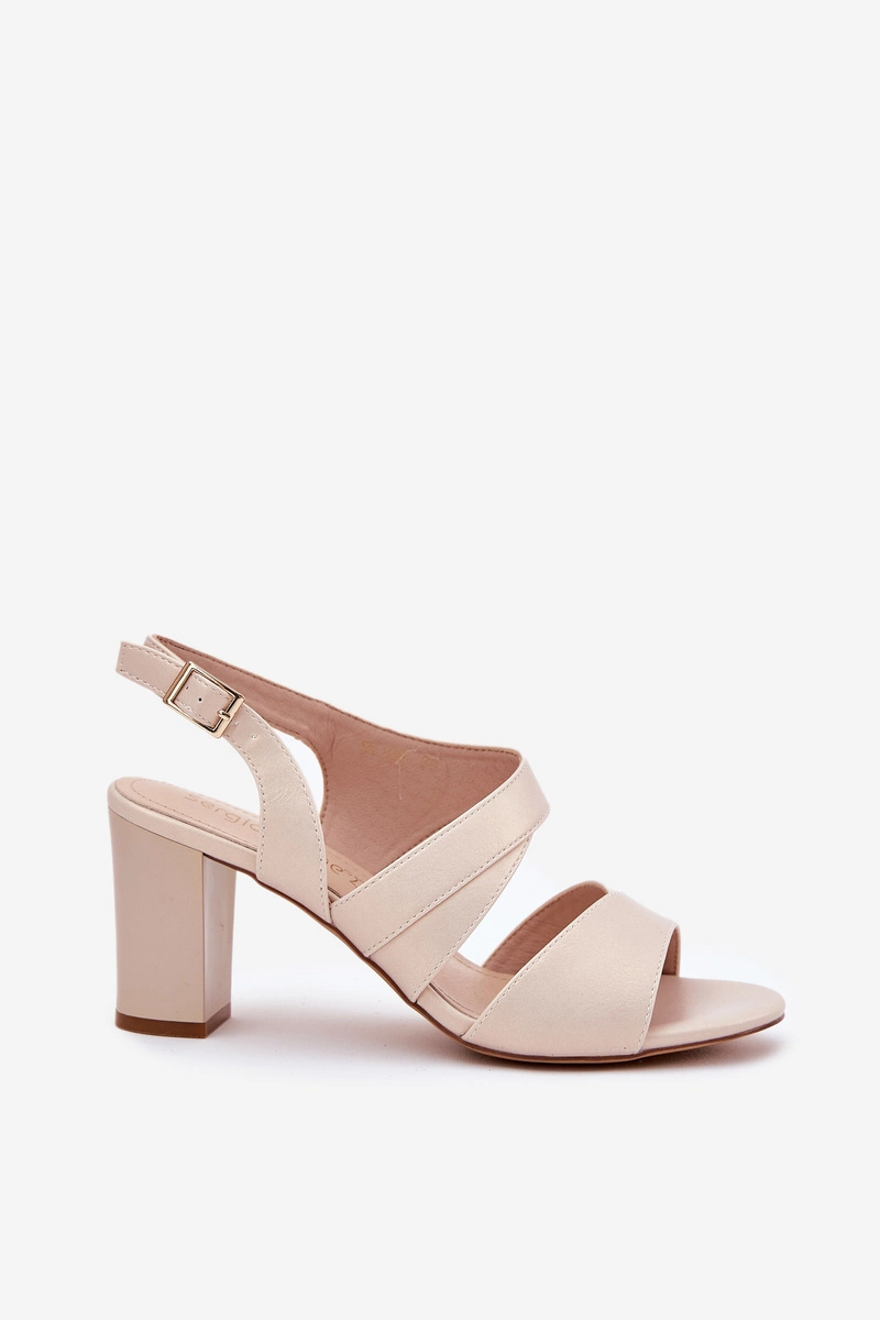 Sandały Damskie Na Słupku Sergio Leone SK866 Beżowe