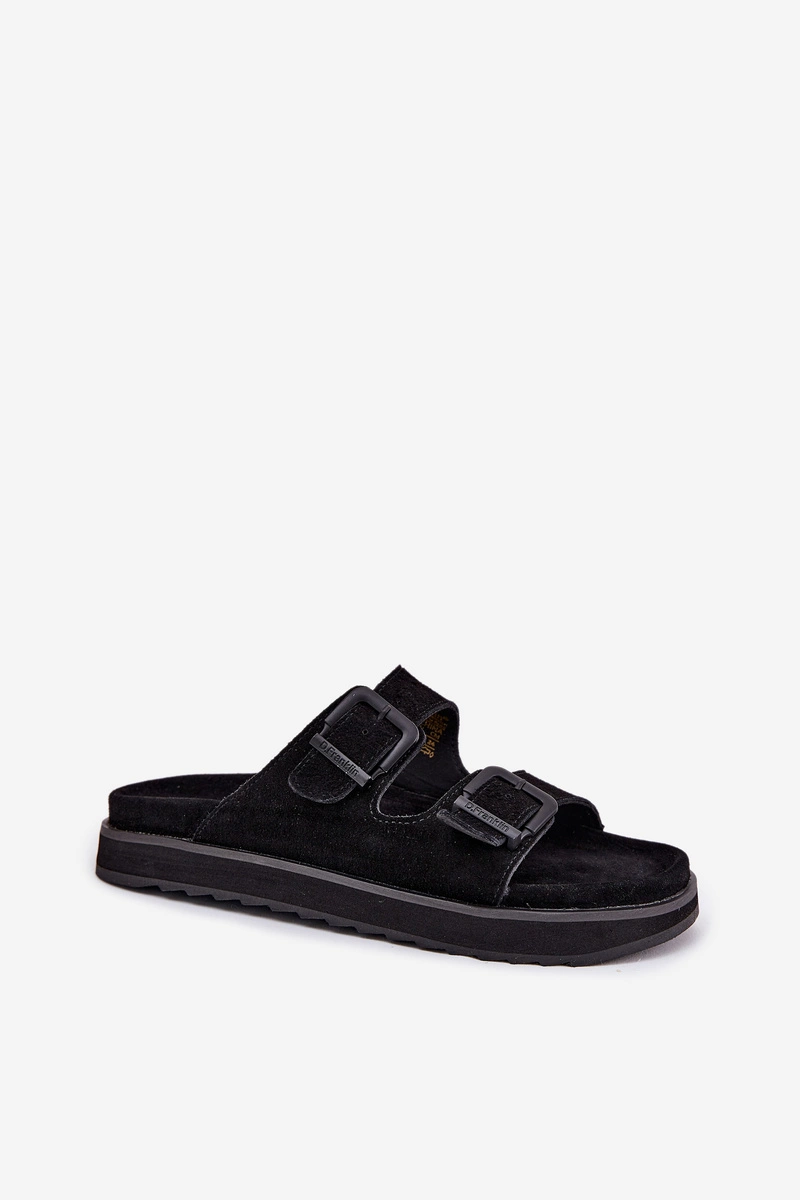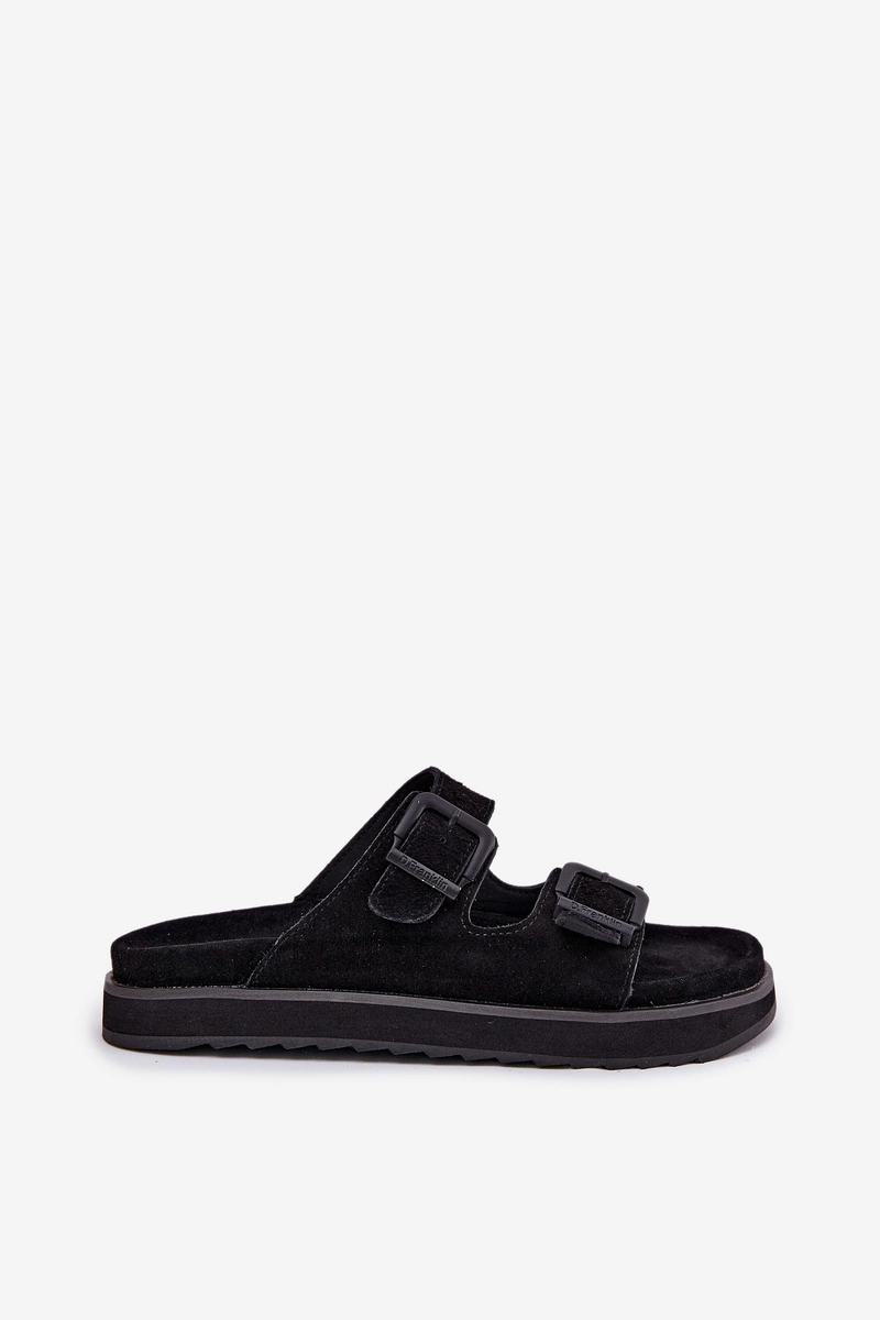 Zamszowe Klapki Damskie Z Klamrami D.Franklin DFSH405001 Czarne