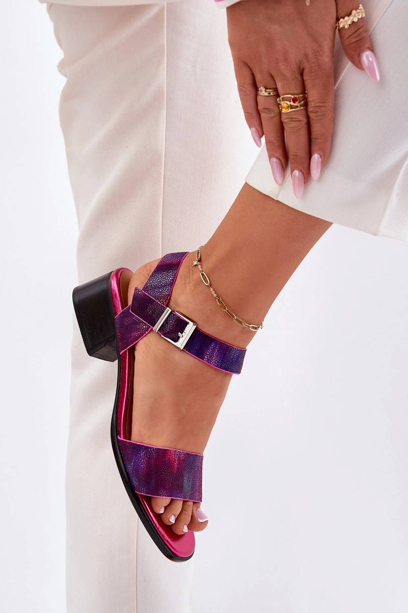 Skórzane Sandały Damskie Na Obcasie Maciejka N6802-15 Fuksja