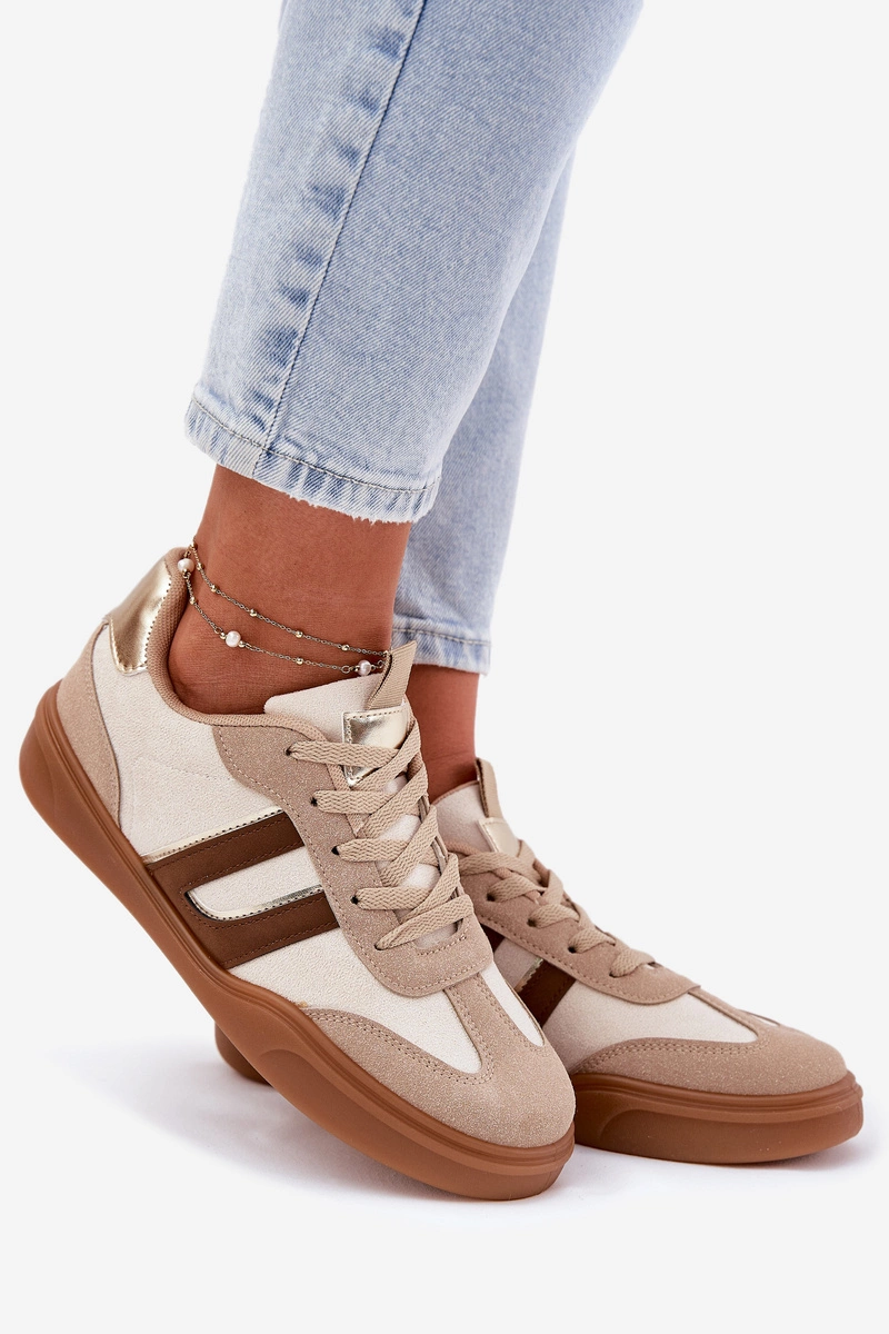 Sneakersy Damskie Z Eko Zamszu Beżowe Satylies