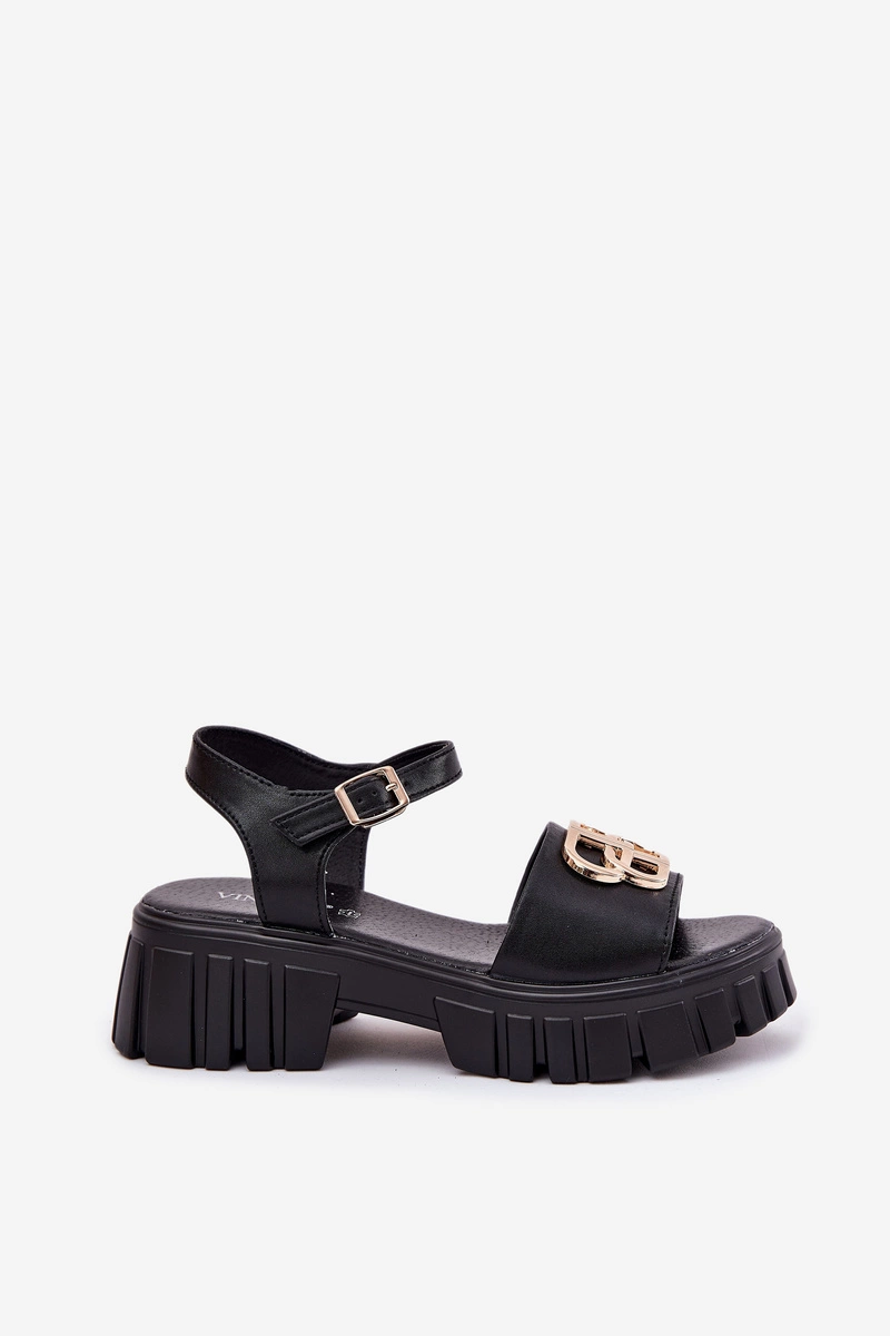 Skórzane Sandały Damskie Ze Złotym Detalem Vinceza 79541 Czarne