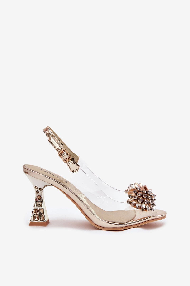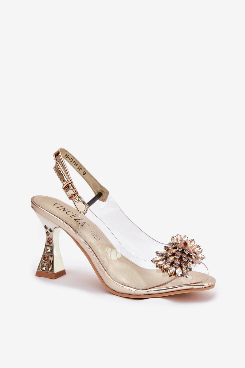 Transparentne Sandały Na Obcasie Z Kryształkami Vinceza 70116 Złote