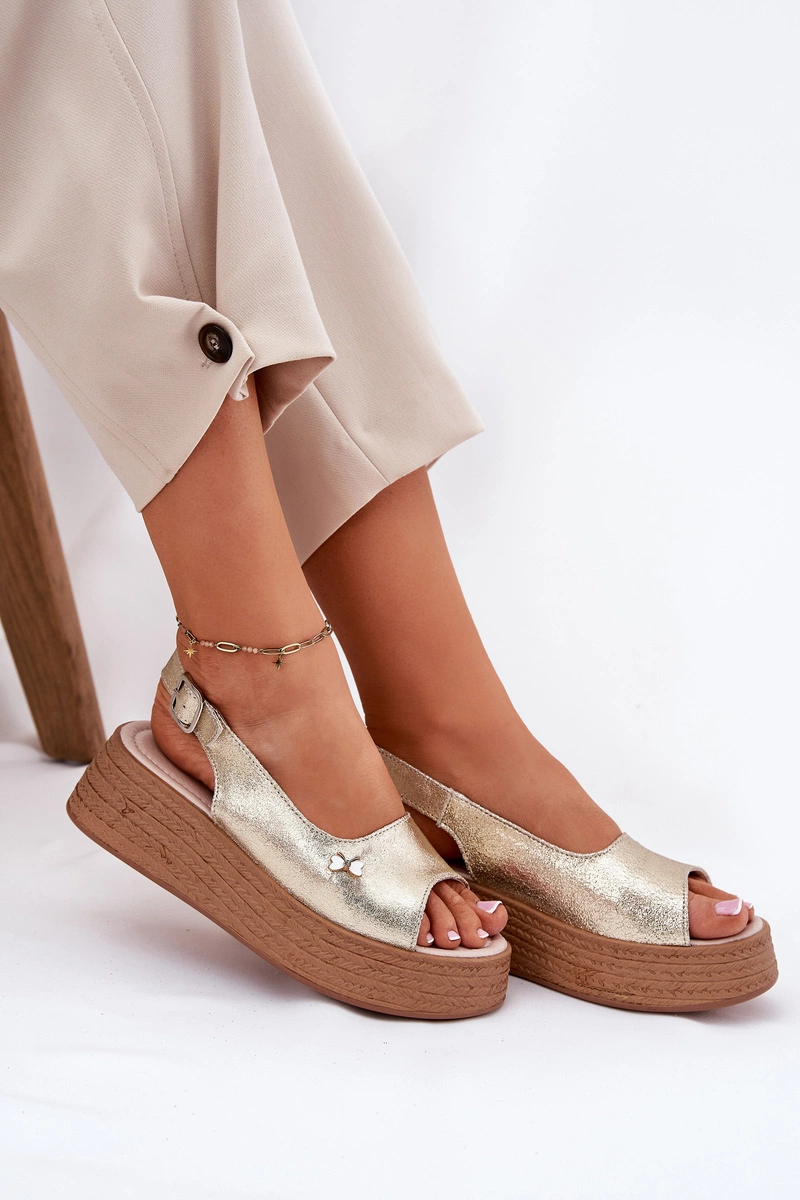 Skórzane Sandały Damskie Na Koturnie Vinceza 41476 Złote