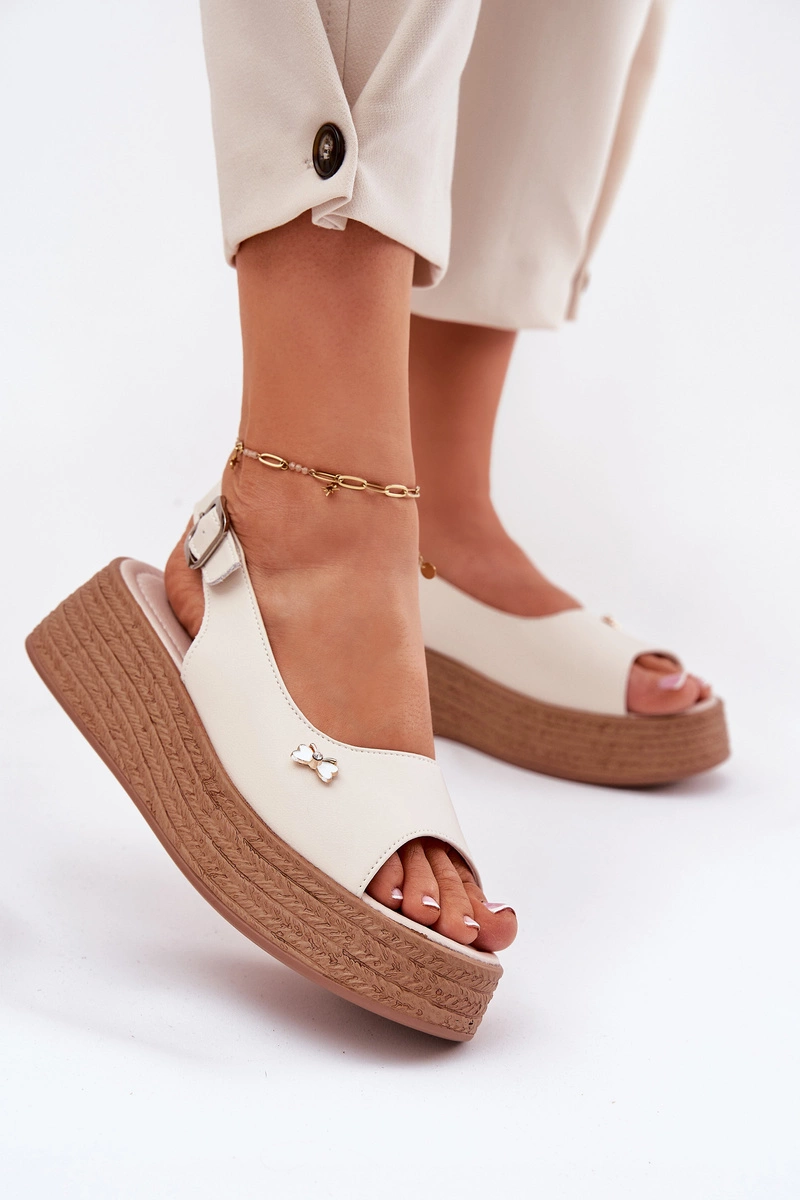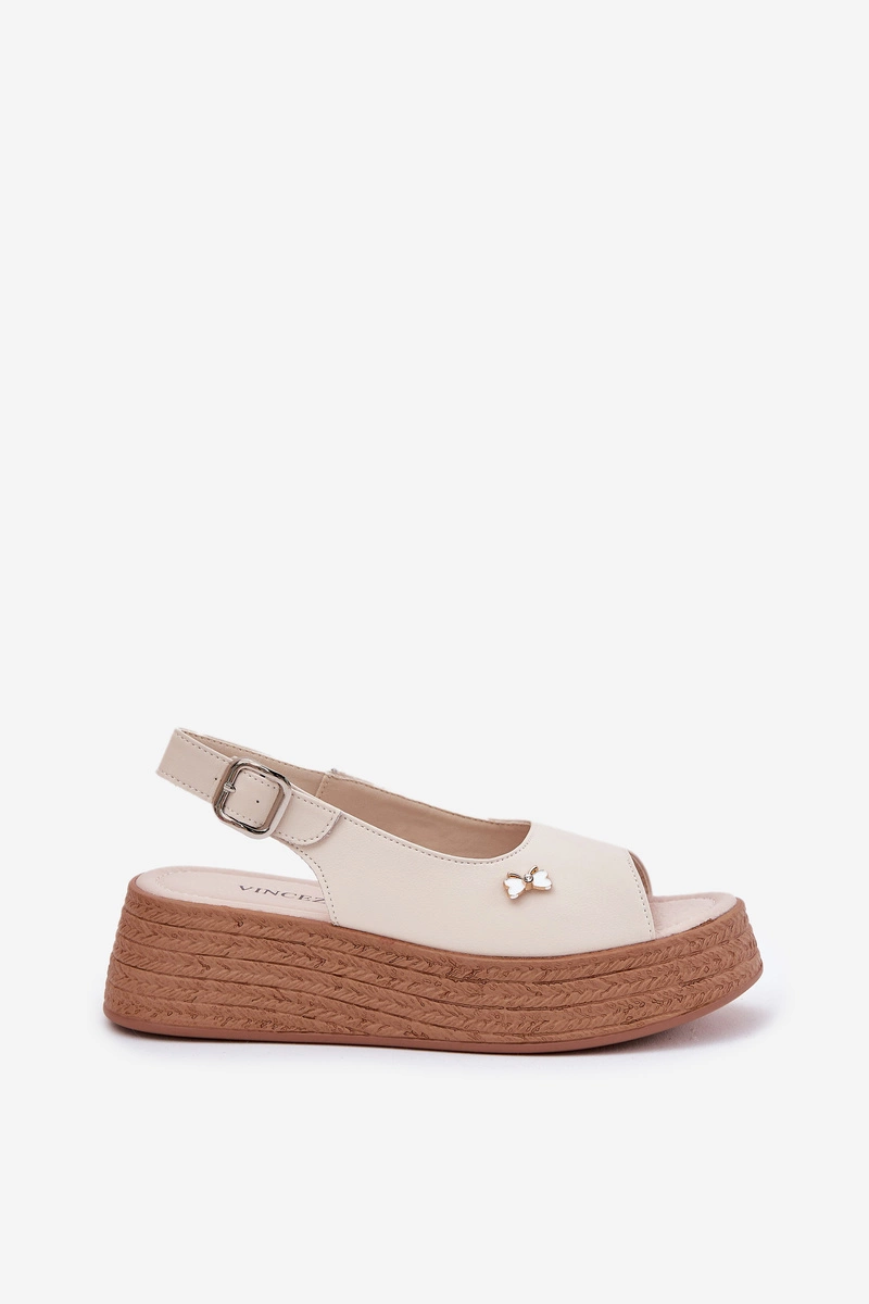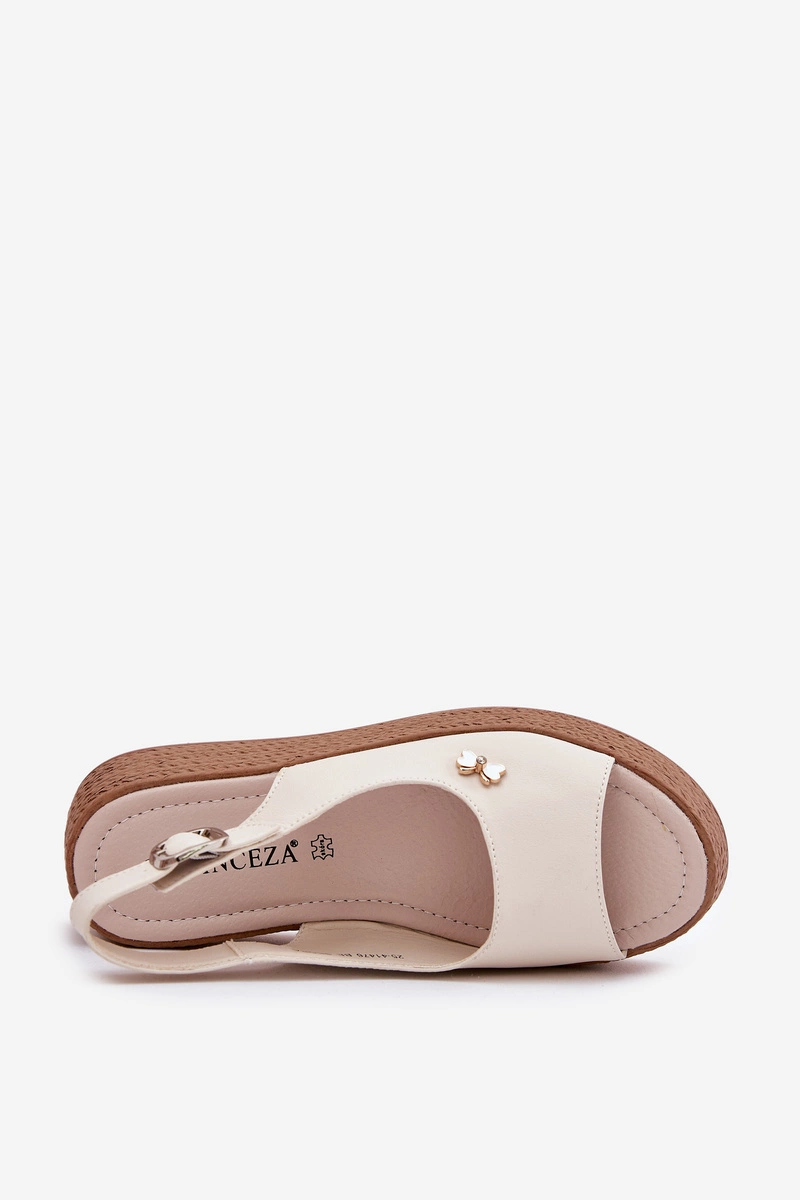Skórzane Sandały Damskie Na Koturnie Vinceza 41476 Beżowe