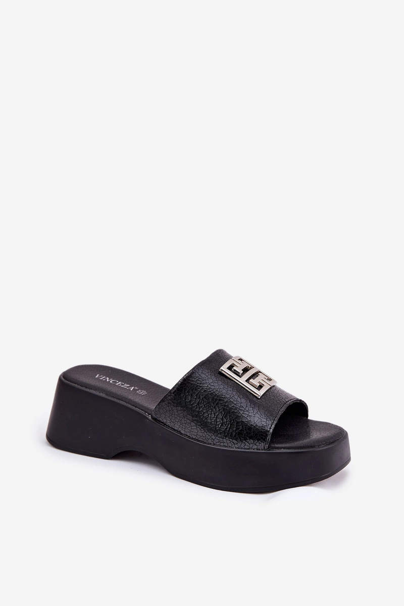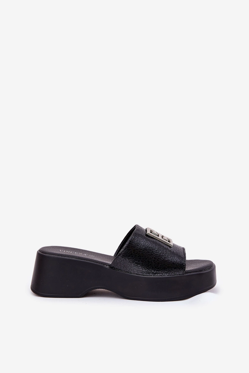 Skórzane Klapki Damskie Z Ozdobą Vinceza 79526 Czarne