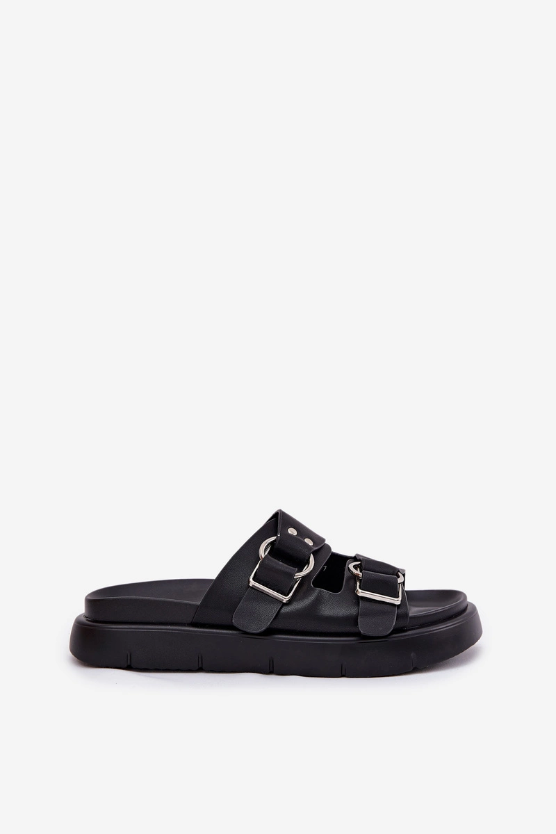 Skórzane Klapki Damskie Z Ozdobnymi Klamrami Big Star RR274658 Czarne