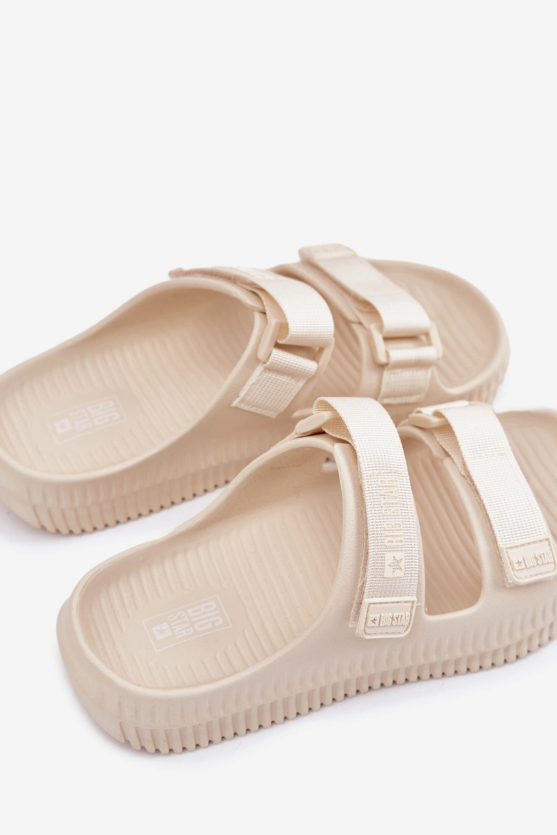 Piankowe Klapki Damskie Z Rzepami Big Star RR274A529 Beżowe