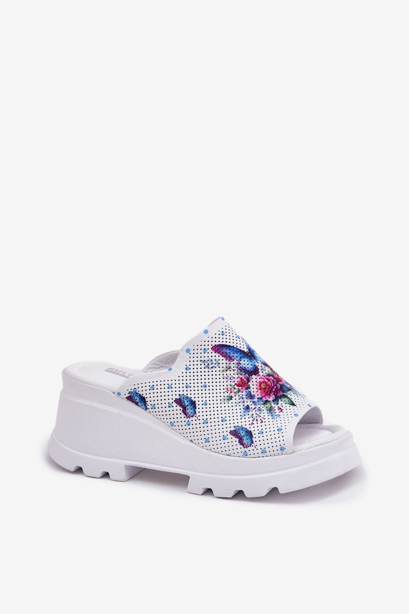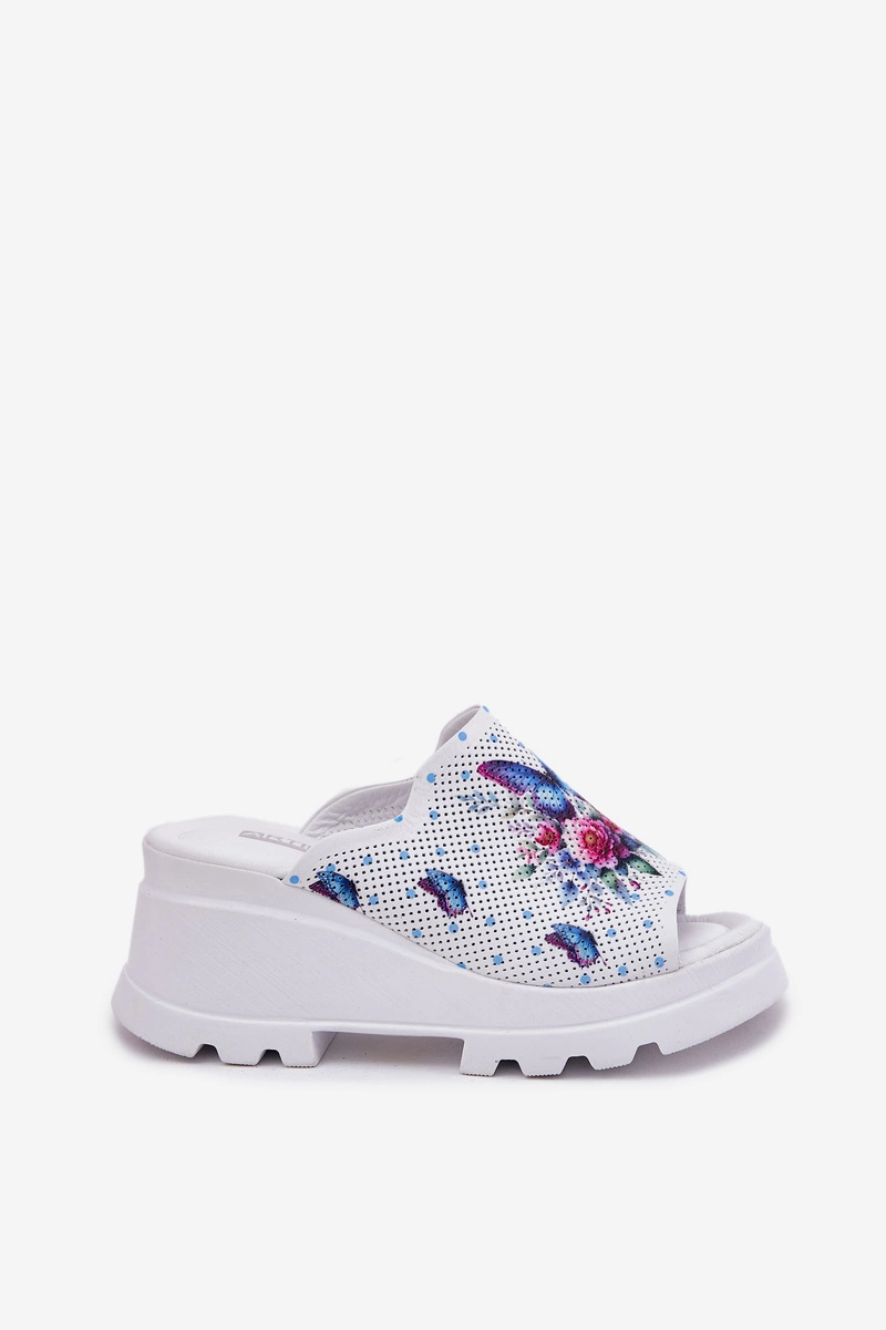 Skórzane Klapki Damskie Na Koturnie Artiker 56C0428 Białe
