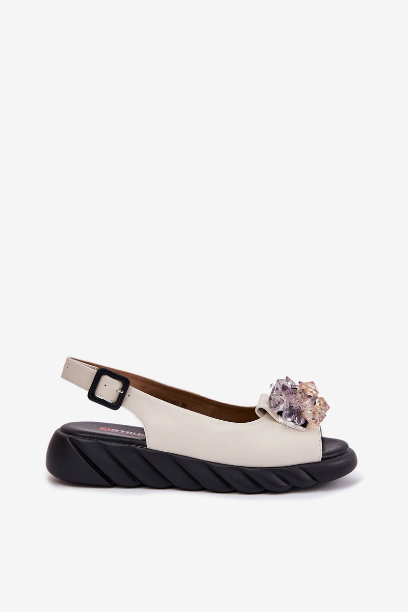 Skórzane Sandały Damskie Z Kryształkami Artiker 54C1627 Beżowe