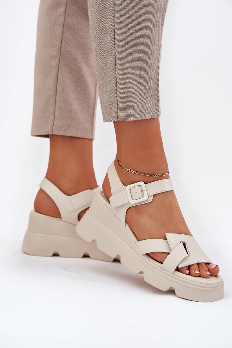 Skórzane Sandały Damskie Na Koturnie Artiker 54C1624 Beżowe