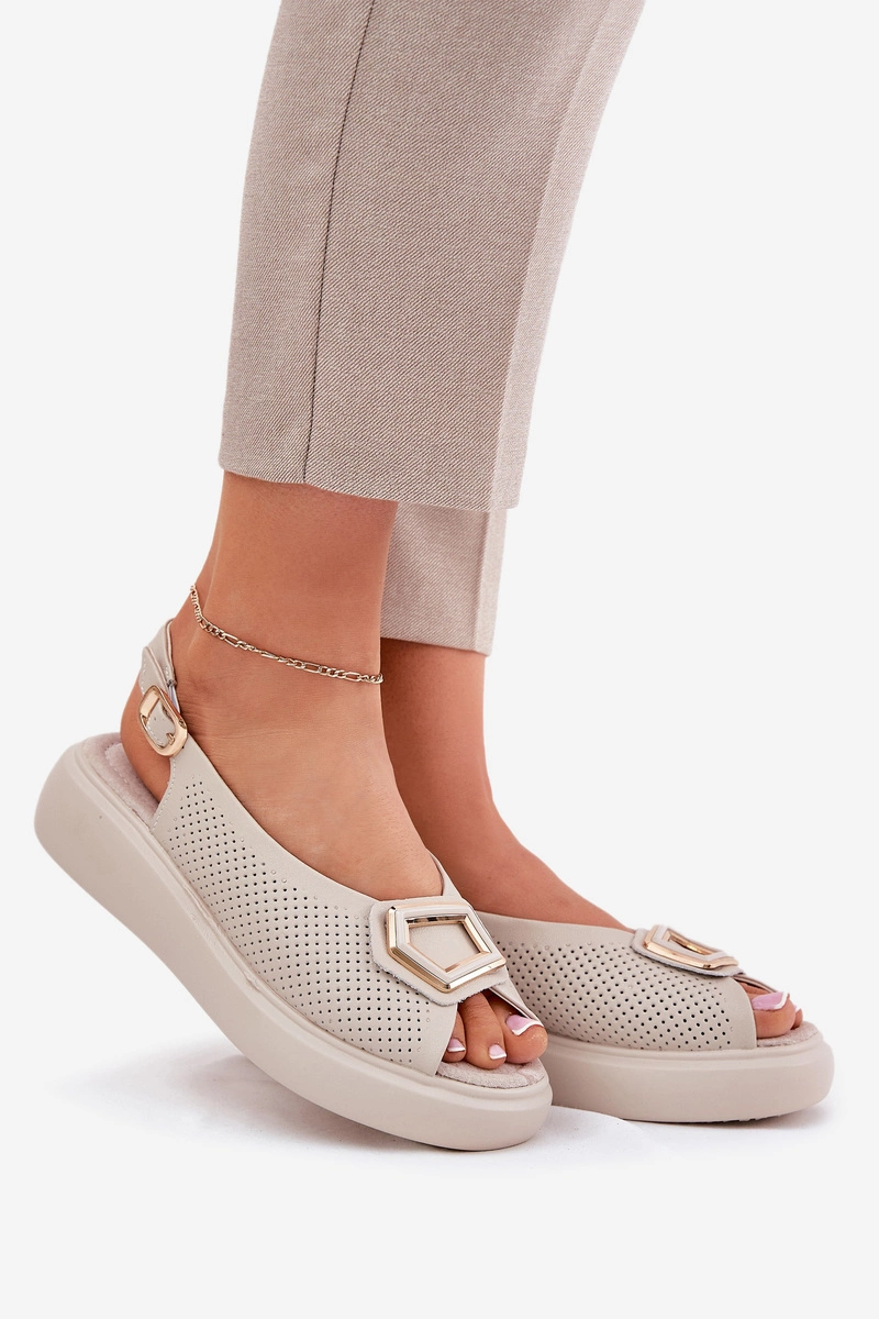 Skórzane Sandały Damskie Z Ozdobą S.Barski LR51-786 Beżowe