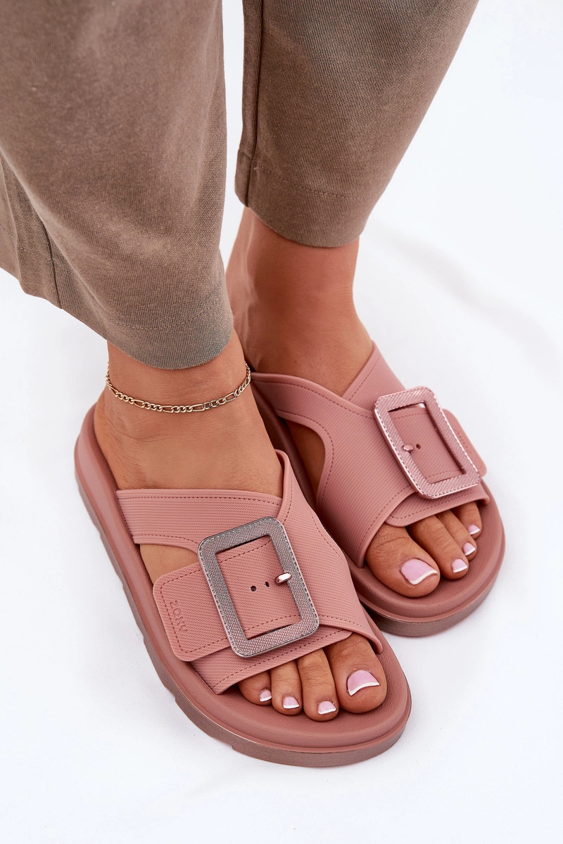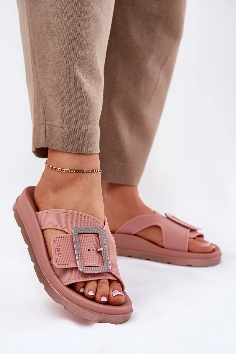 Pachnące Klapki Damskie Z Ozdobną Klamrą ZAXY RR285077 Brudny Róż