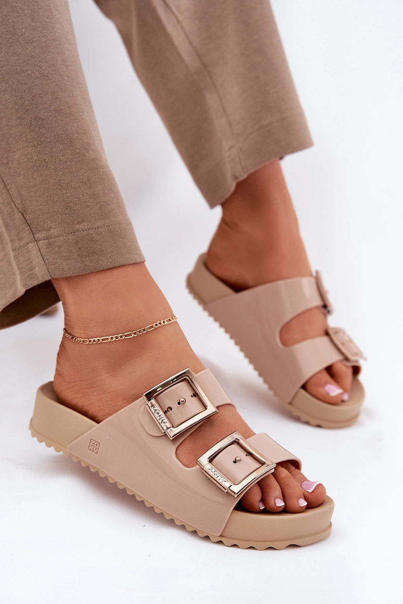 Wygodne obuwie, które zapewni Twoim stopom pełen komfort podczas letnich, ciepłych dni. Funkcjonalne klapki na płaskiej podeszwie z delikatną platformą. Modne klapki zostały wykonane z lekkiego, a przy tym wysokogatunkowego tworzywa sztucznego. Paski są regulowane, dzięki którym odpowiednio dopasujesz klapki do tęgości nogi. Buty te są wegańskie i hipoalergiczne, a dodatkowo w 100% podlegają recyklingowi. Żaden z produktów marki ZAXY nie posiada komponentów pochodzenia zwierzęcego. Pachnące gumą balonową. Przy wyborze rozmiaru prosimy kierować się tabelą rozmiarów.