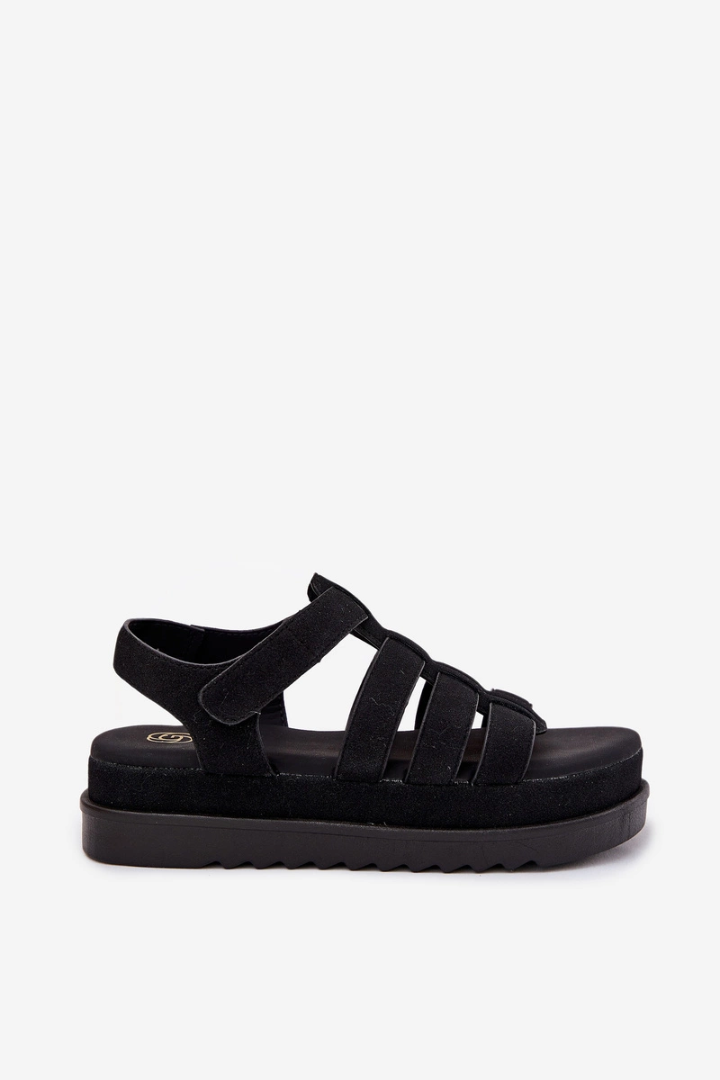 Sandały Damskie Na Platformie Eko Zamszowe Czarne Filisenia