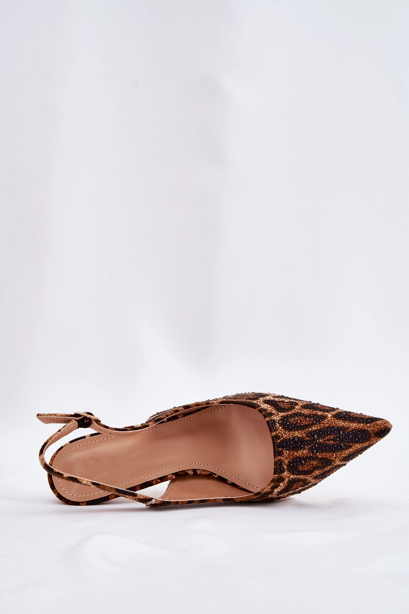 Zdobione Sandały Na Szpilce Panterka Brązowe Kemonia